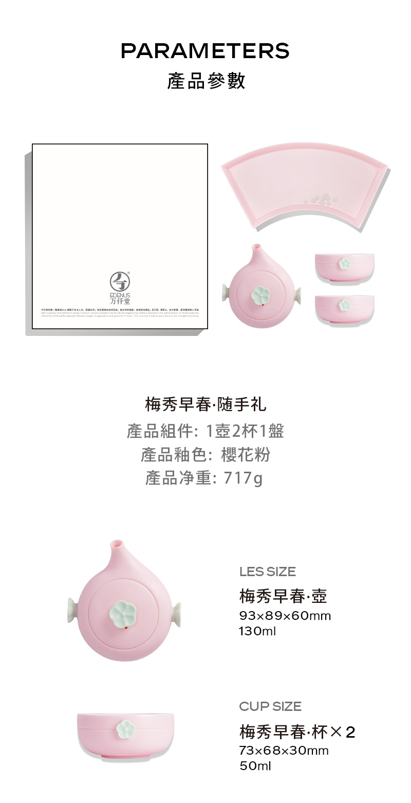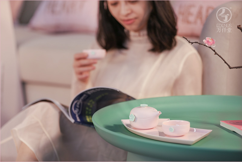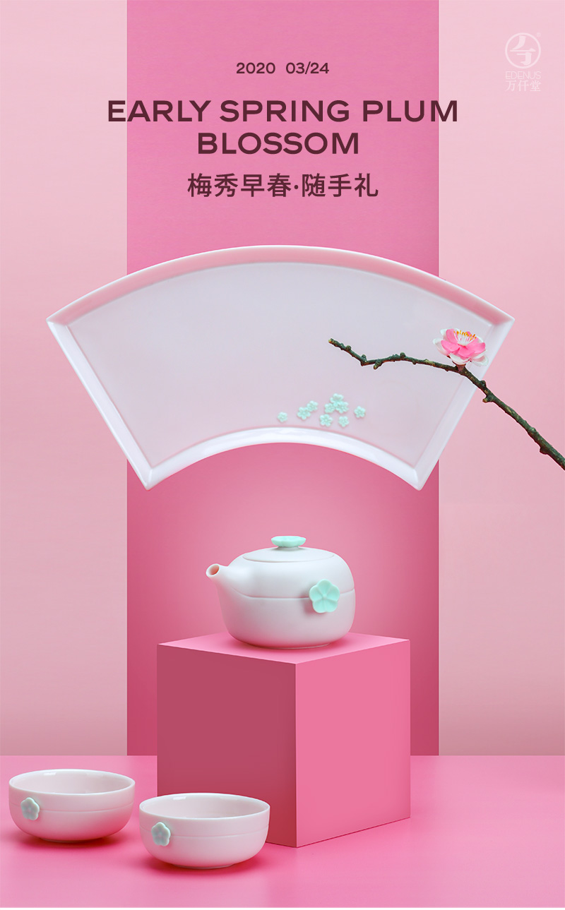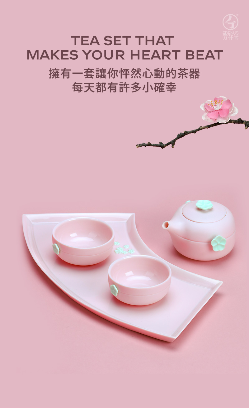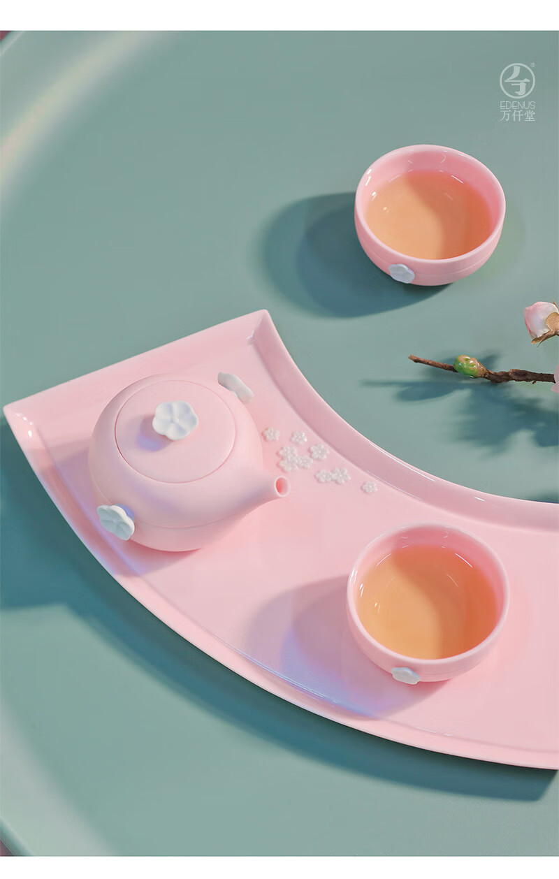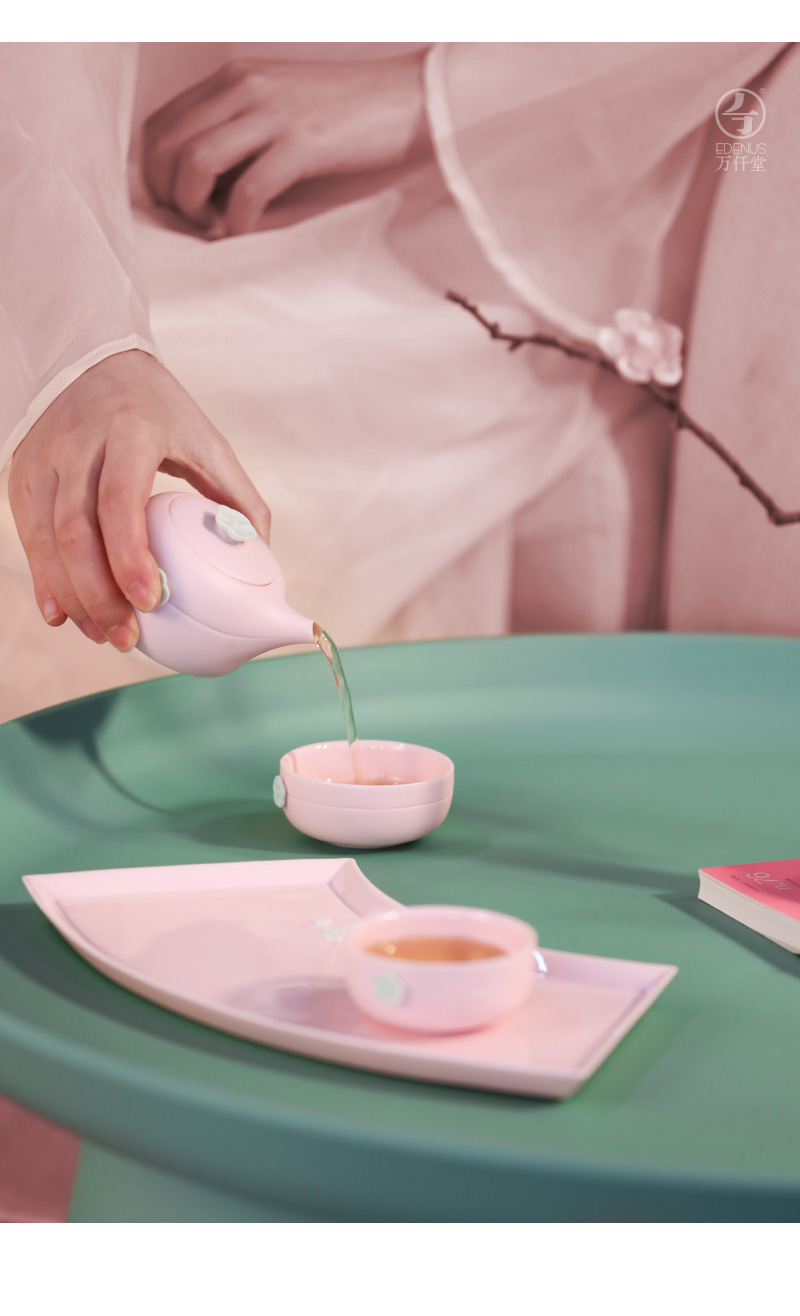 万仟堂茶具套装 功夫整套茶具带茶盘陶瓷高档家用 梅秀早春 樱花粉 1壶2杯1盘