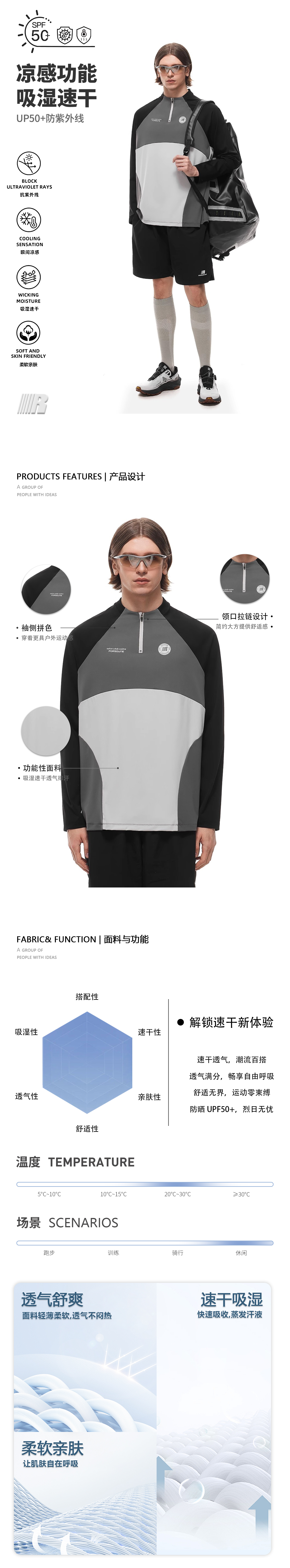 FDR官方店 徽章拉链圆领速干长袖t恤男女春季运动训练服情侣上衣