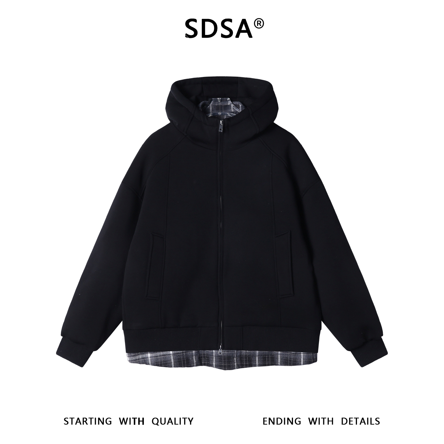 WY242秋冬季新款潮牌美式ins格子拼接假两件外套男百搭复古宽松上衣