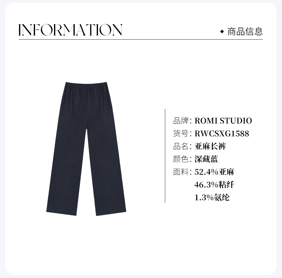 ROMI STUDIO“简约复古”亚麻混纺轻薄松紧腰直筒休闲裤 RWCSXG1588