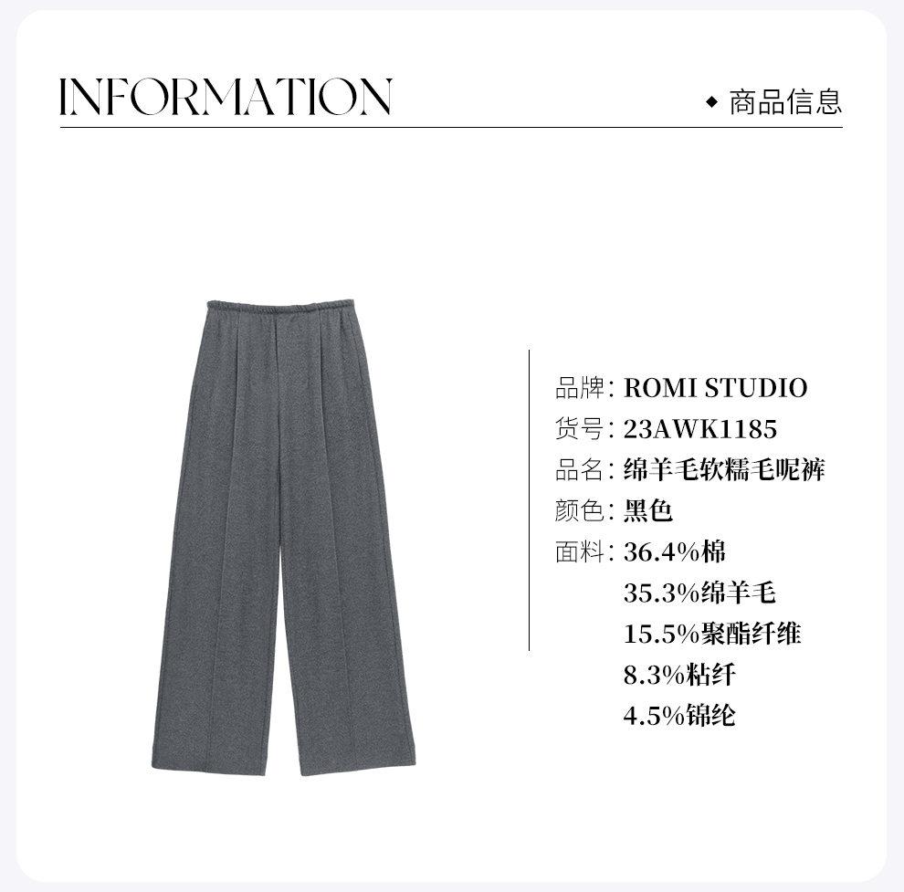 ROMI STUDIO“quiet luxury”80S美利奴绵羊毛软糯毛呢裤23AWK1185