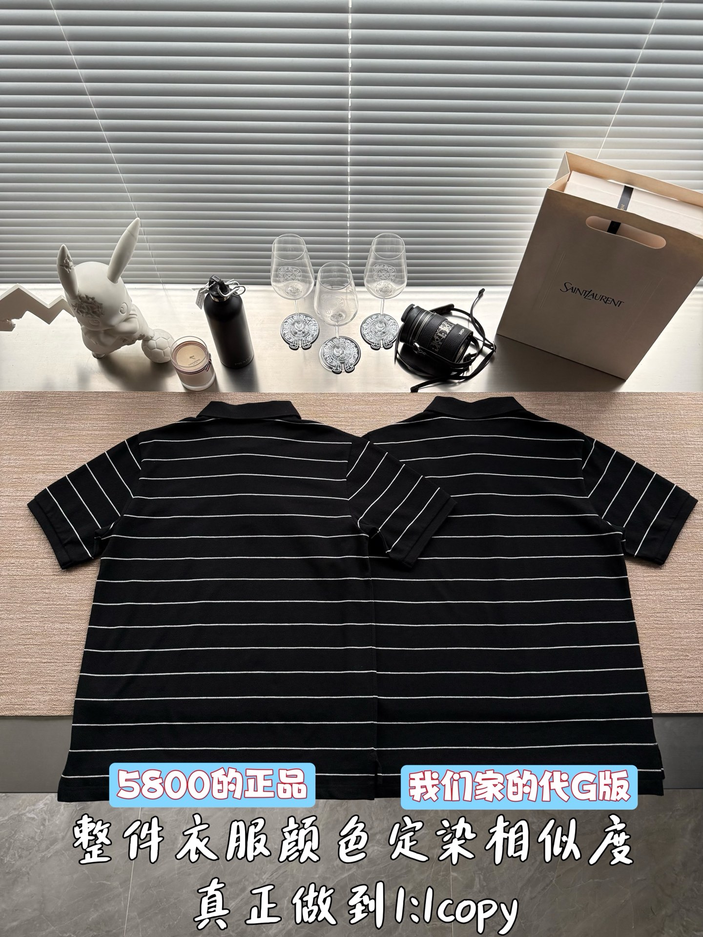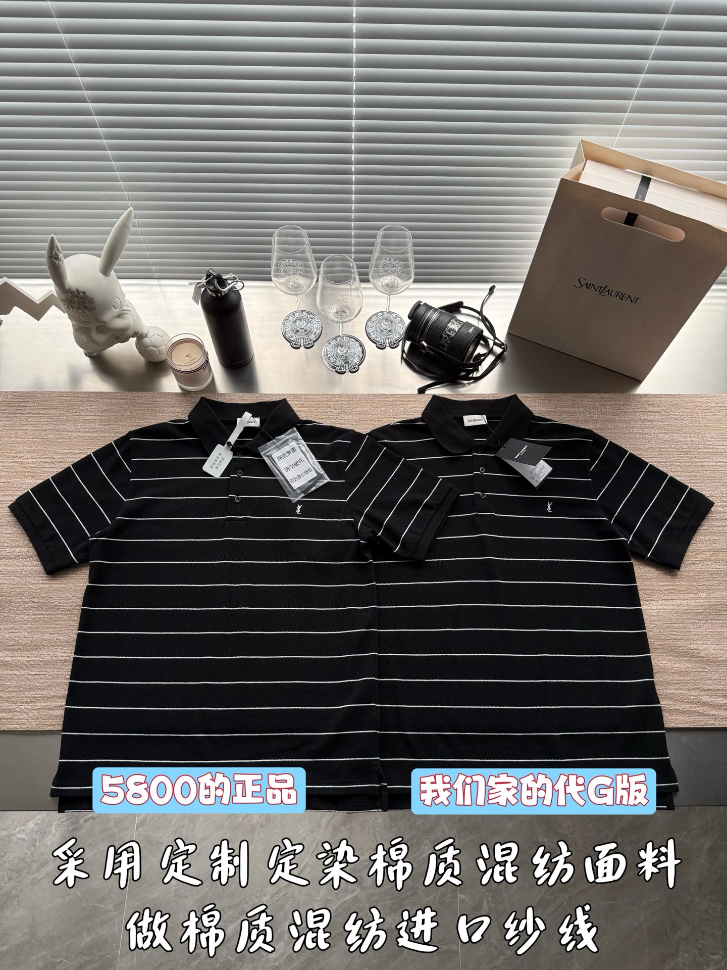 整件衣服5800购买ZP拆解打造,采用定制棉质混纺面料,做棉质混纺进口纱线,采用意大利进口12针电脑横机制造,整件衣服经典条纹设计,胸前点缀撞色YSL刺绣字母logo标识,定织标志性罗纹袖口,真正做到1:1copy 闭眼入