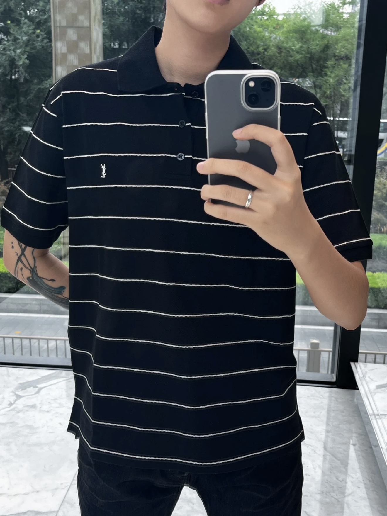 YSL圣罗兰 标识刺绣条纹POLO衫‼️