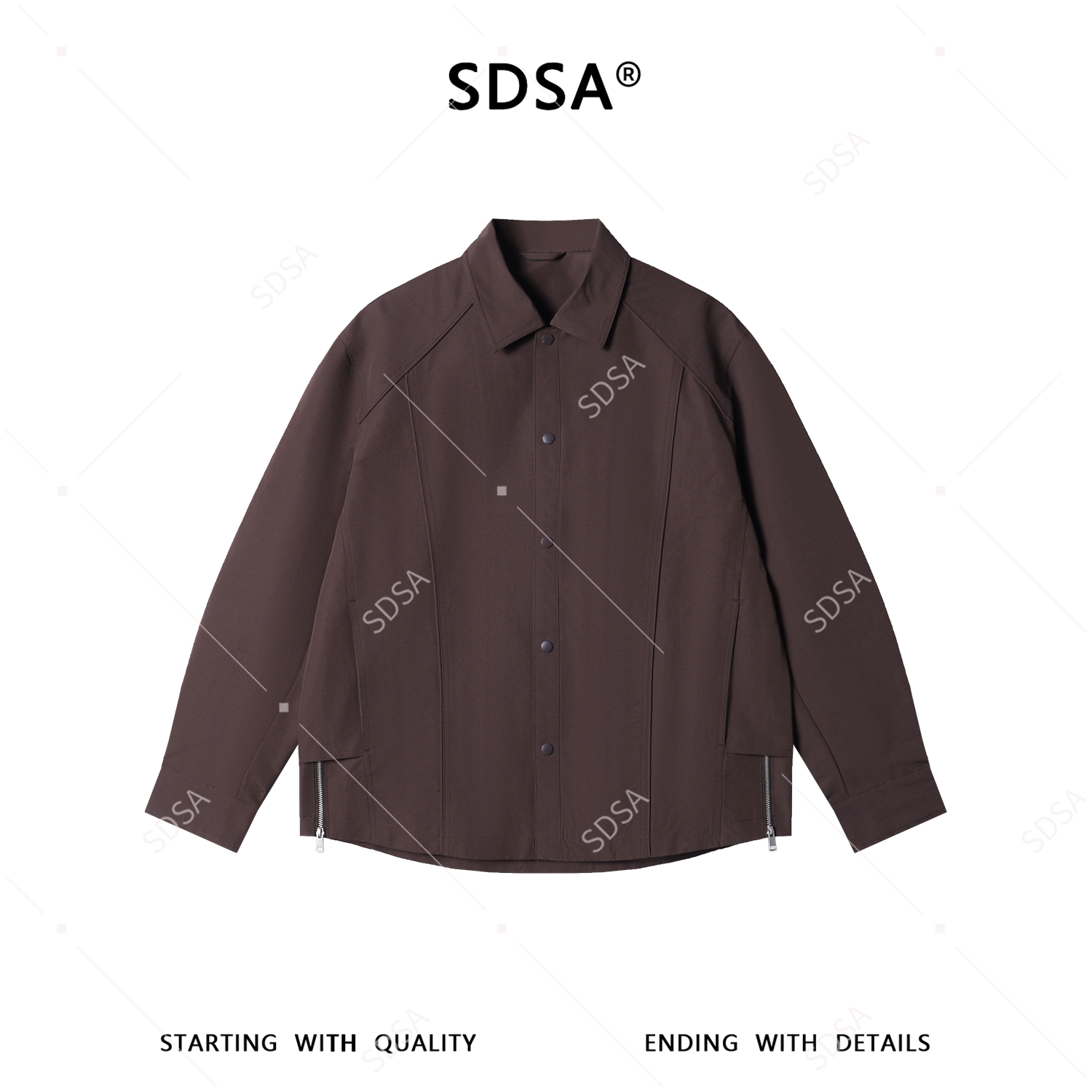 SDSA男士春夏新款痞帅男装复古设计感拼接按扣翻领夹克外套百搭