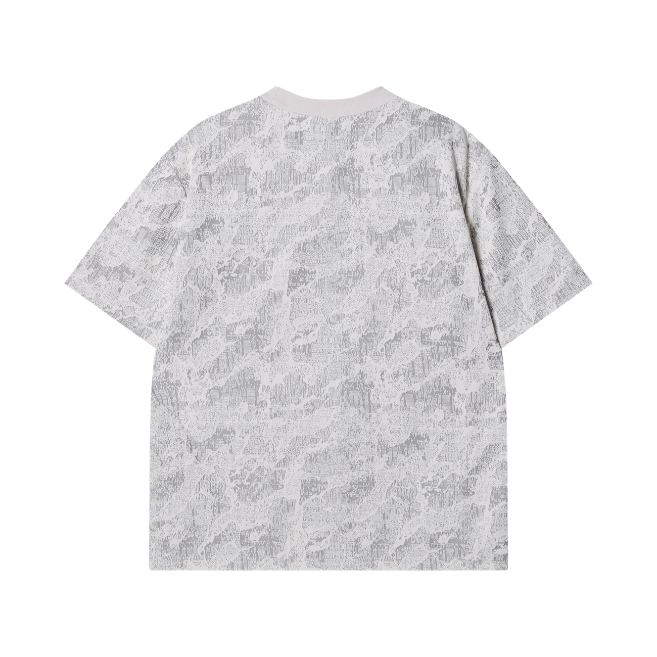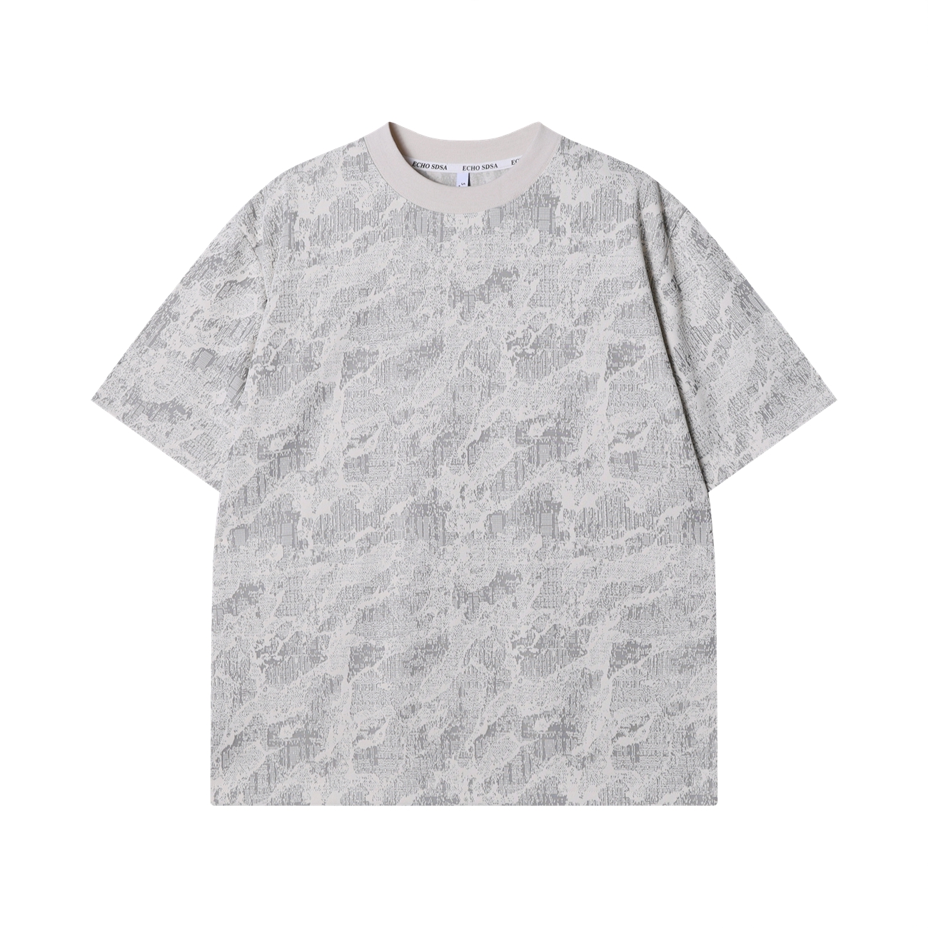 T3182夏季高级感新款美式撞色暗纹提花圆领短袖T恤经典百搭简约上衣