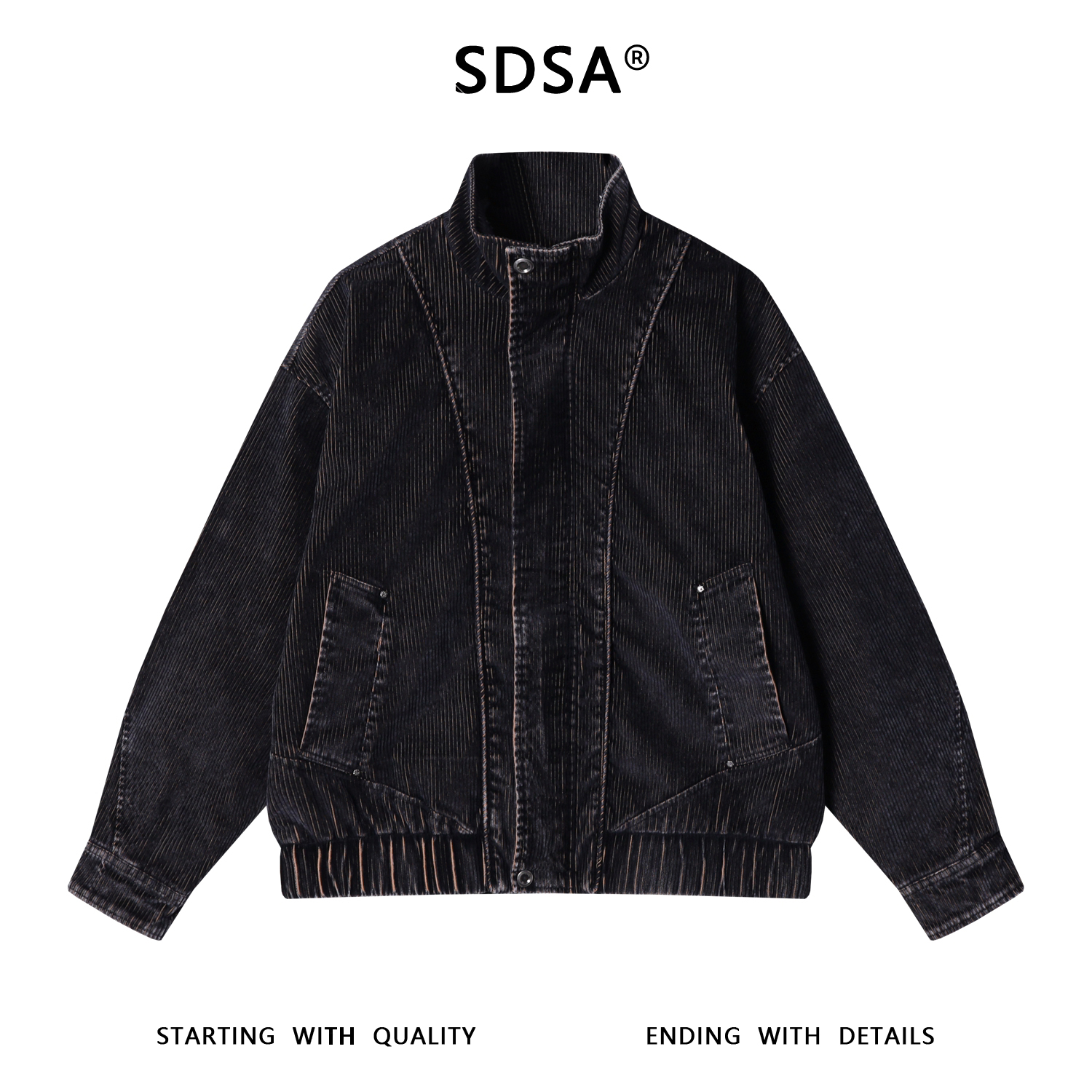 J59201SDSA男士秋冬新款痞帅男装做旧竖纹立领拉链夹克百搭时尚休闲外套