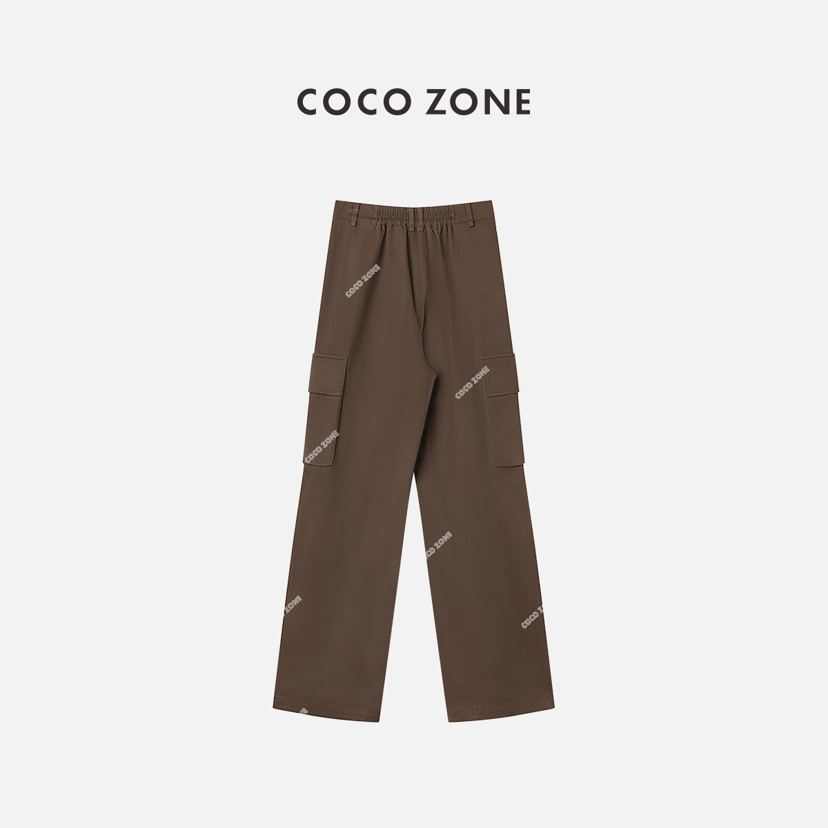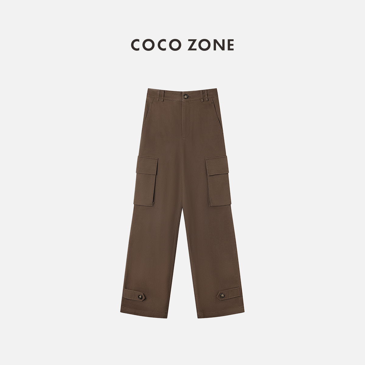 COCO ZONE”美式咖啡“复古工装裤中部口袋装饰直筒休闲裤24C10057