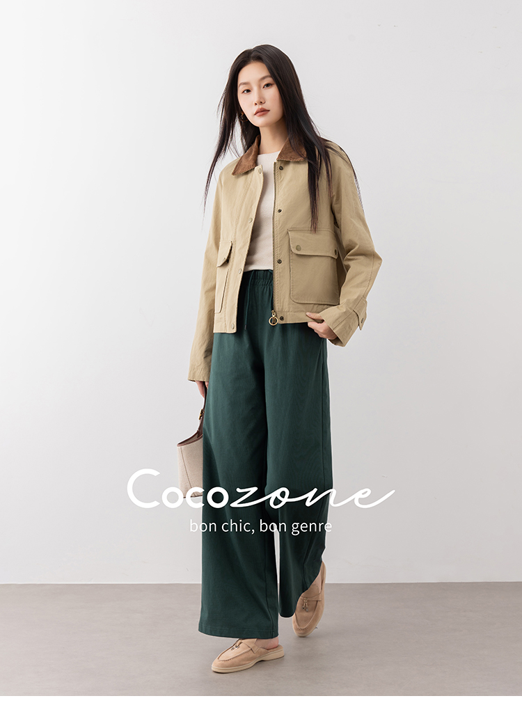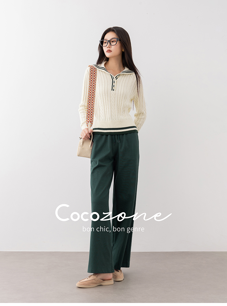 COCO ZONE 刘一一25新款100棉纯色极简垂坠松弛感运动风休闲裤CD2A1641