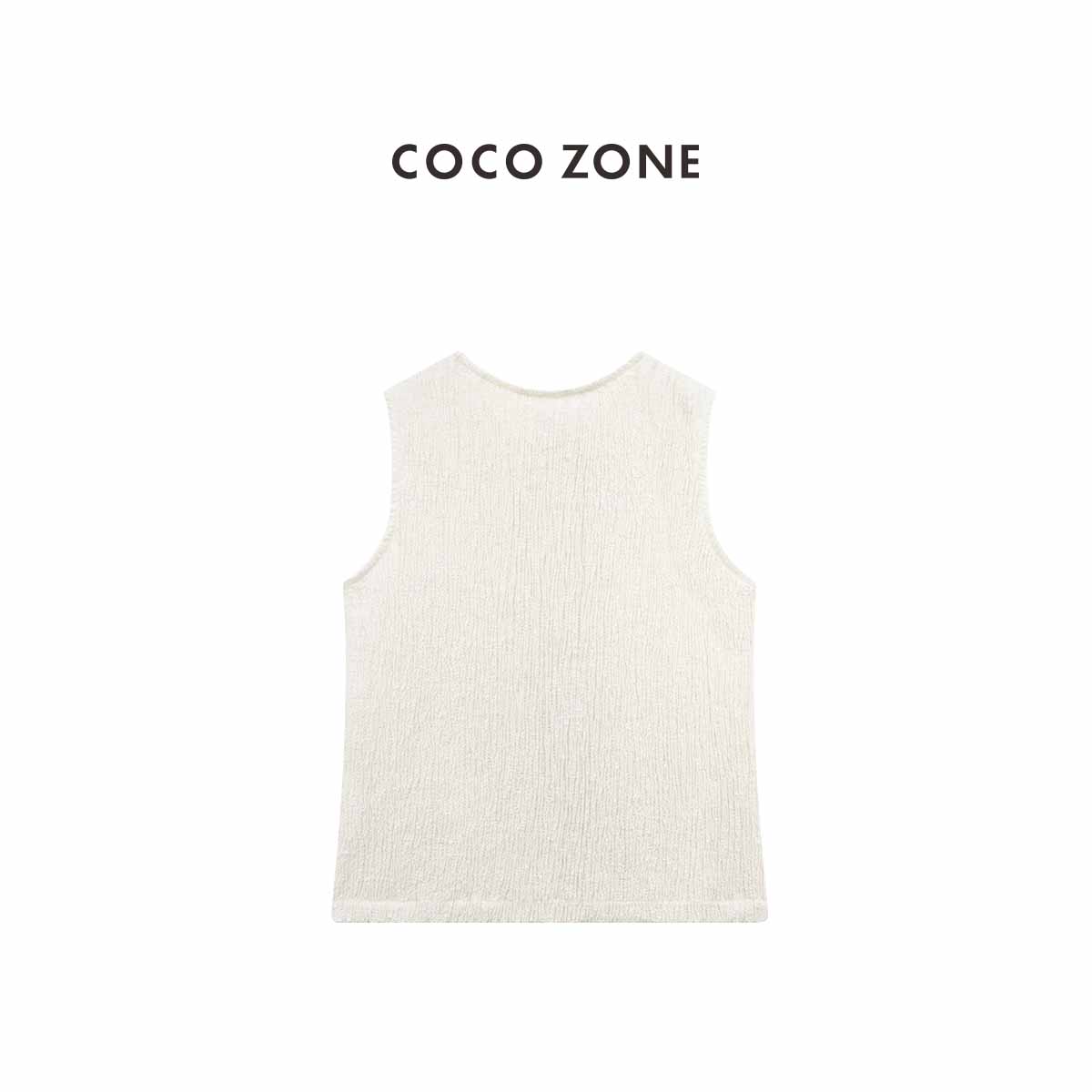 COCO ZONE "泡泡马甲”夏季简约圆领马夹气质单排扣无袖上衣CC1B1373