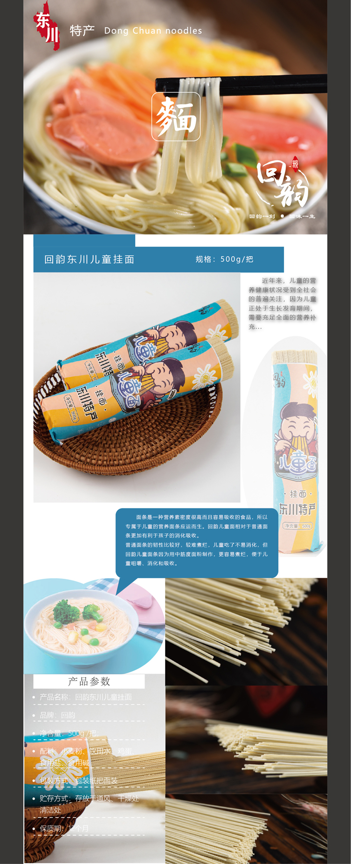 回韵东川儿童挂面500g*3把装