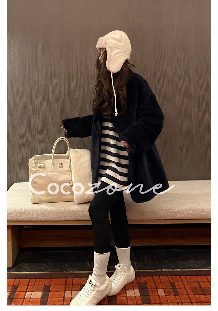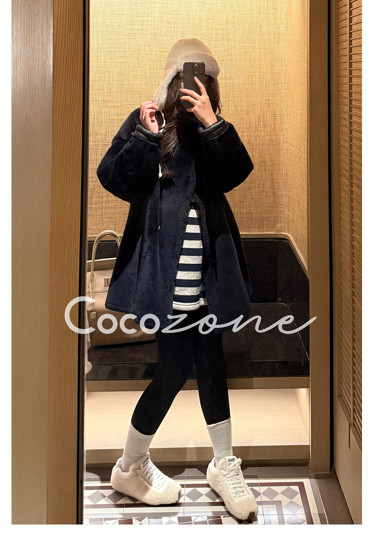 COCO ZONE 刘 一一 【100羊毛革】纯色绒感皮草 CD2A3104