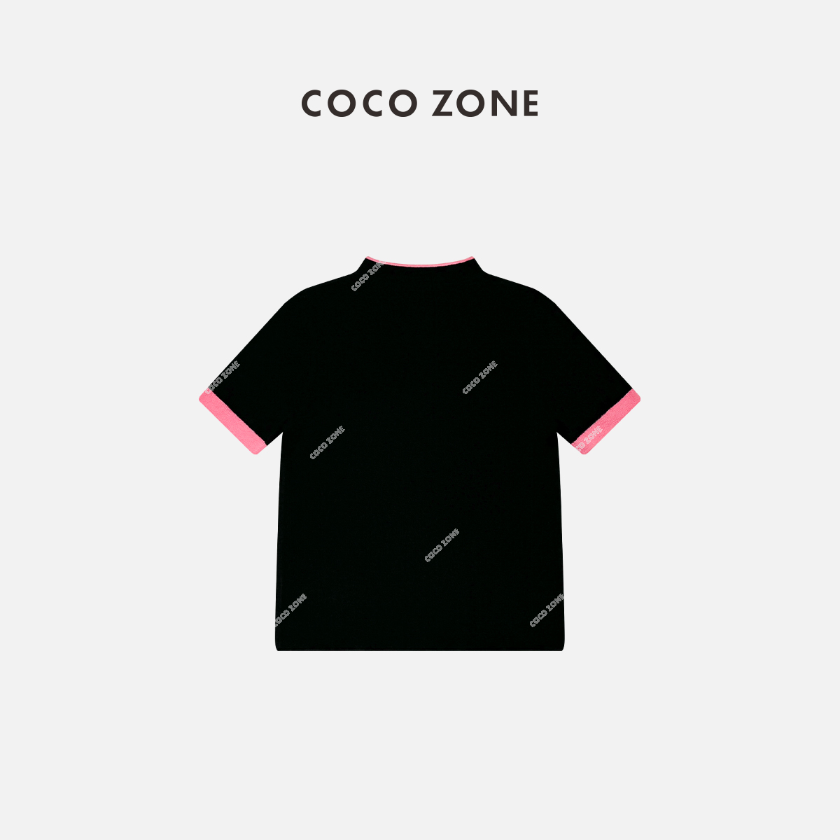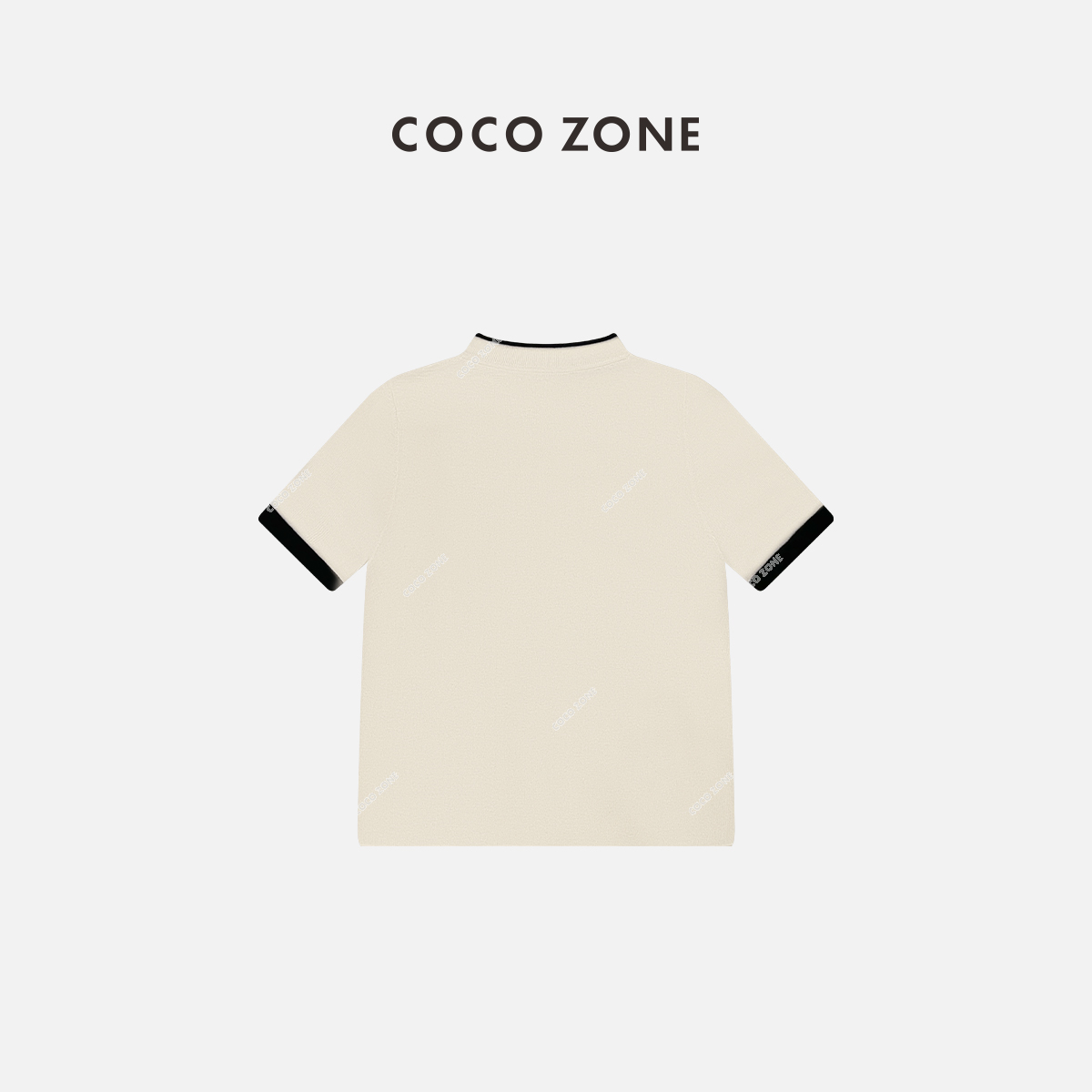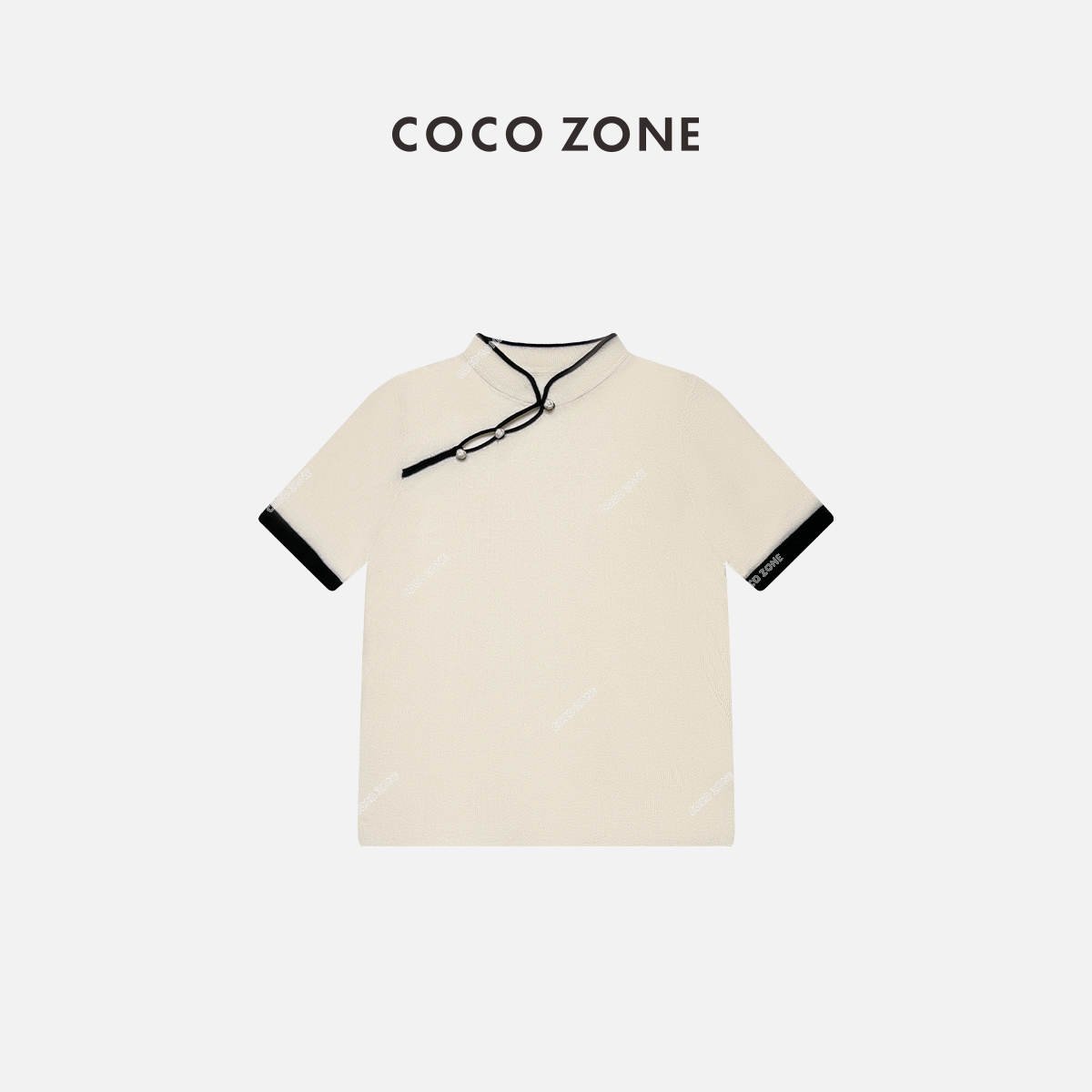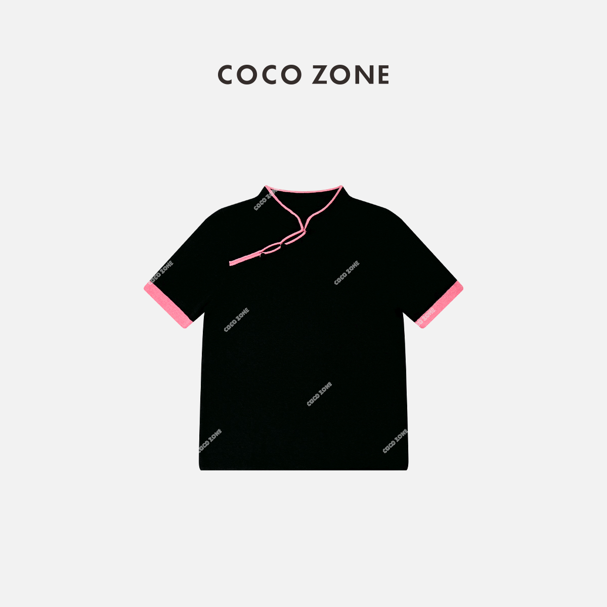 COCO ZONE2024新中式国风盘扣立领针织衫撞色短袖毛衣CC2A0309