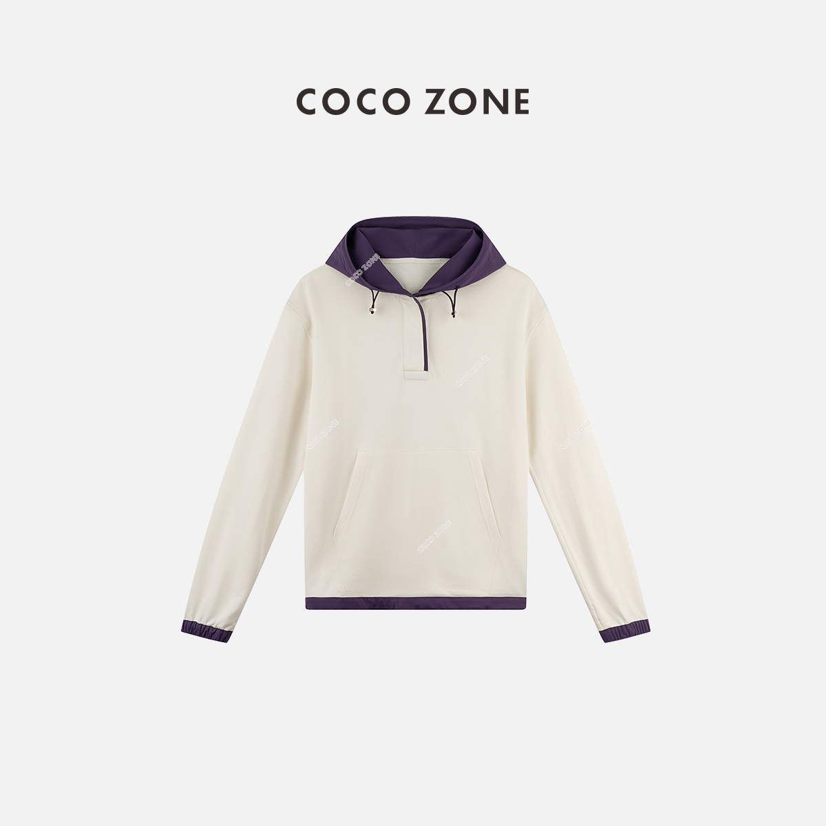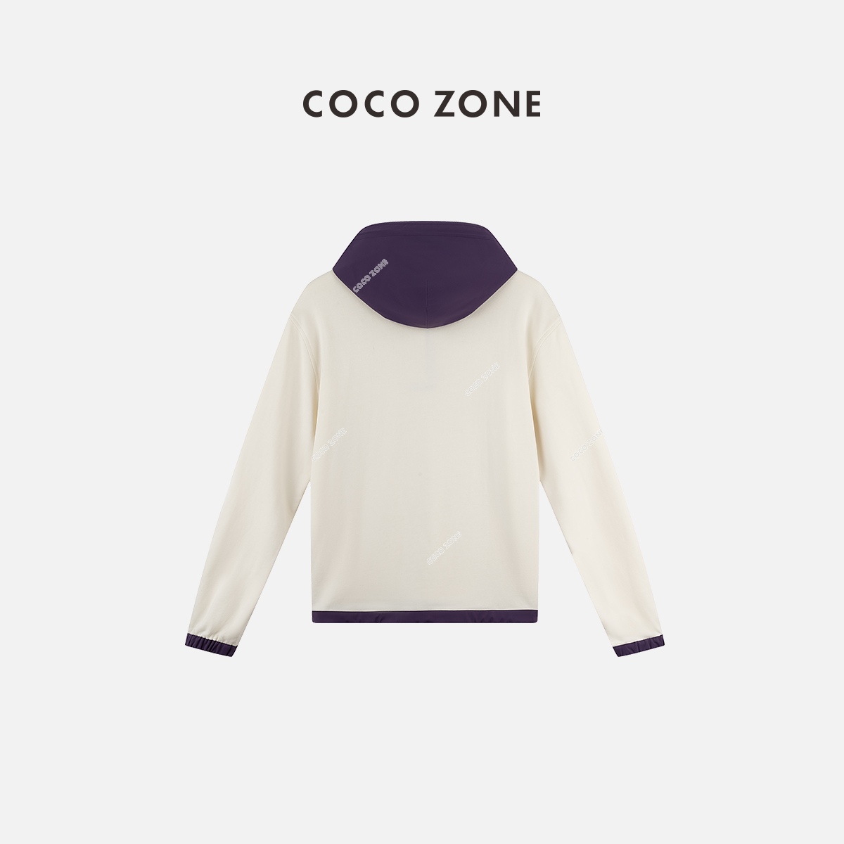 COCO ZONE 时尚撞色拼接连帽卫衣高级感宽松休闲上衣 24C10322