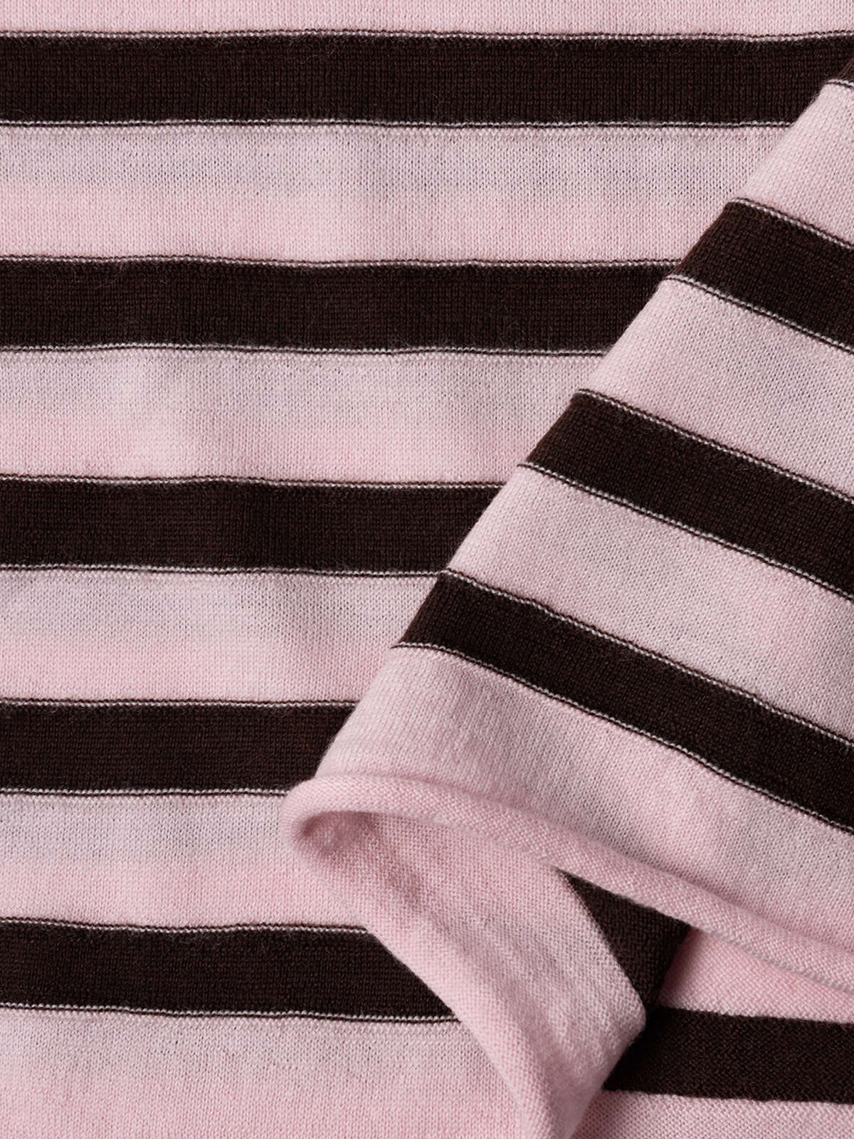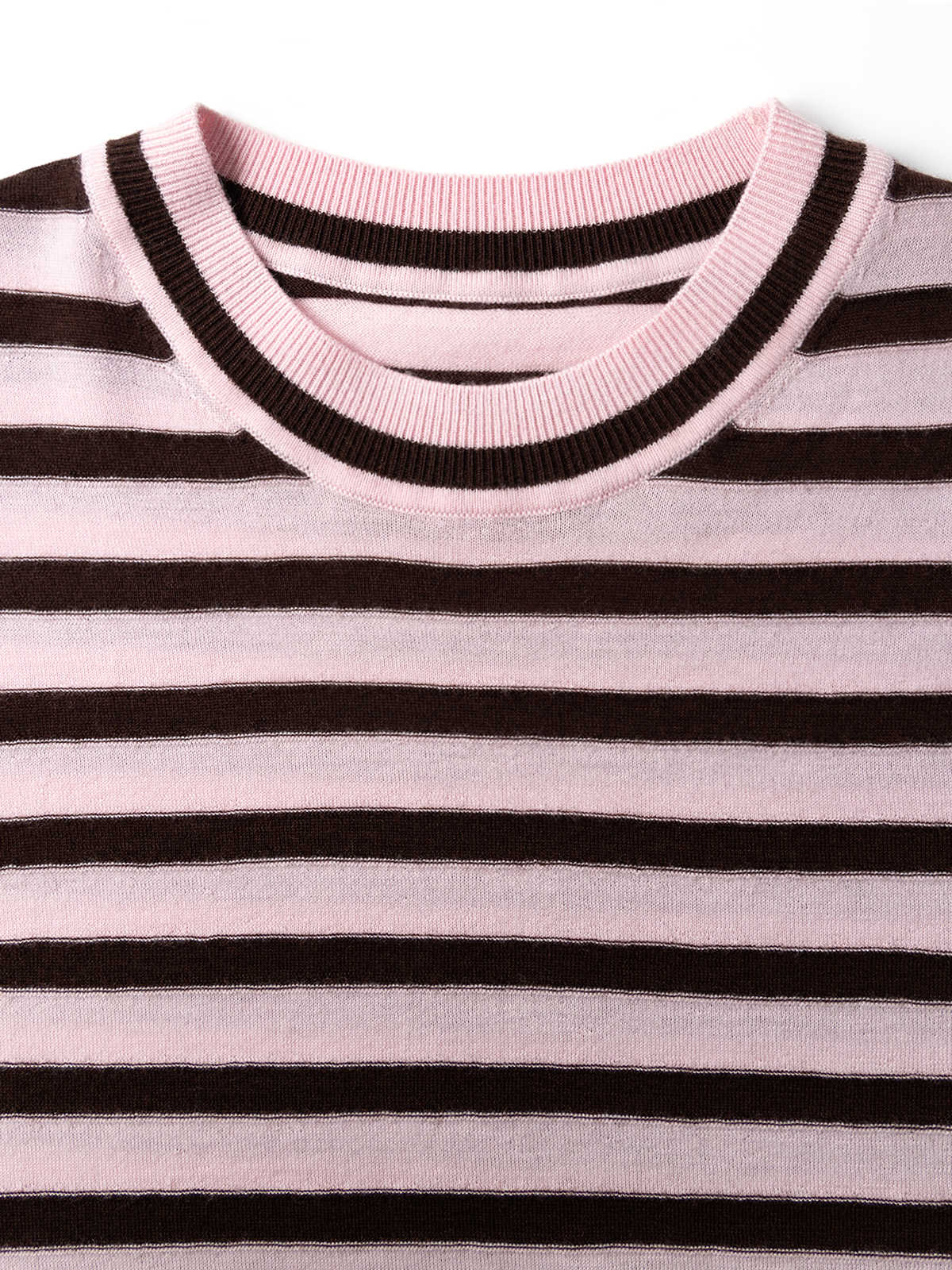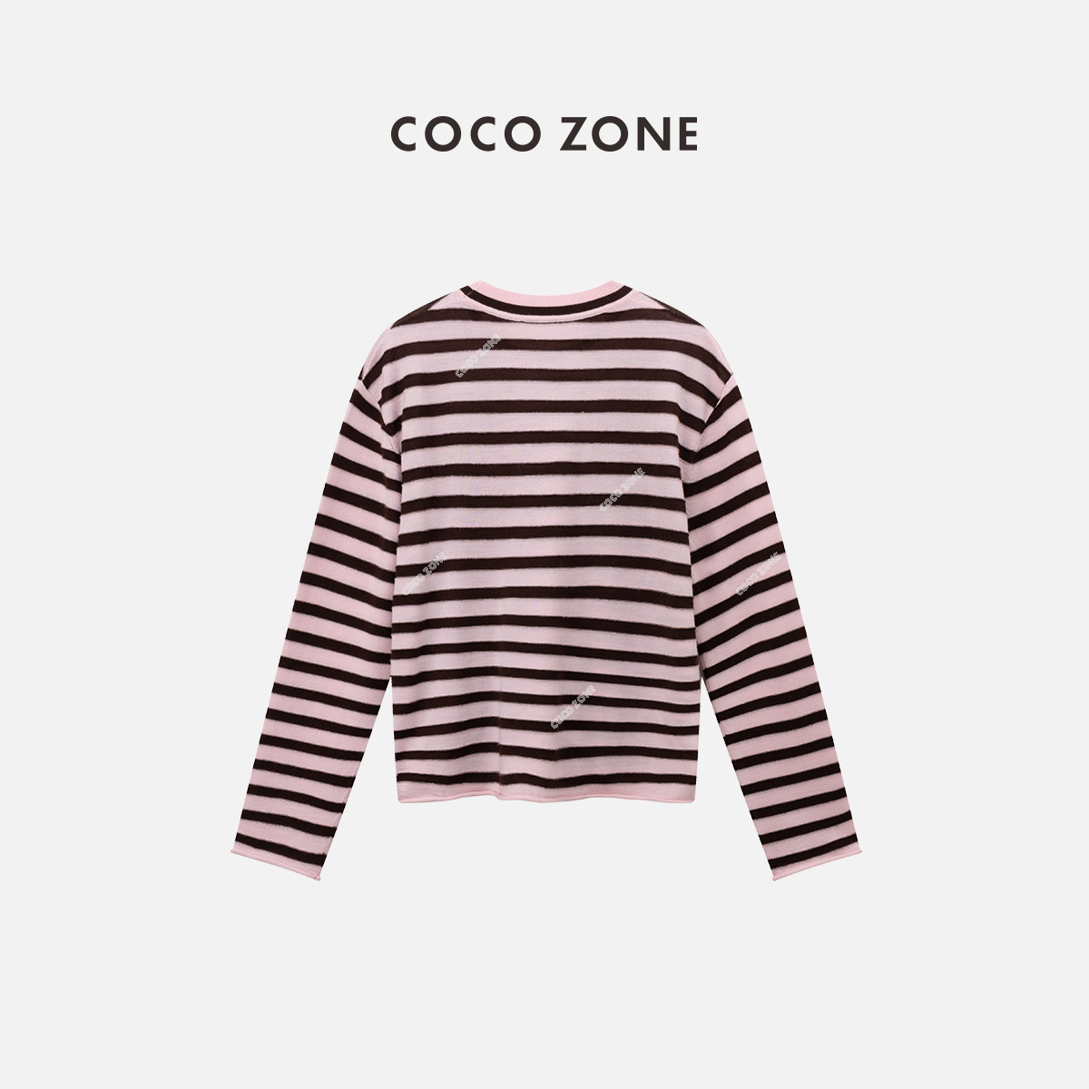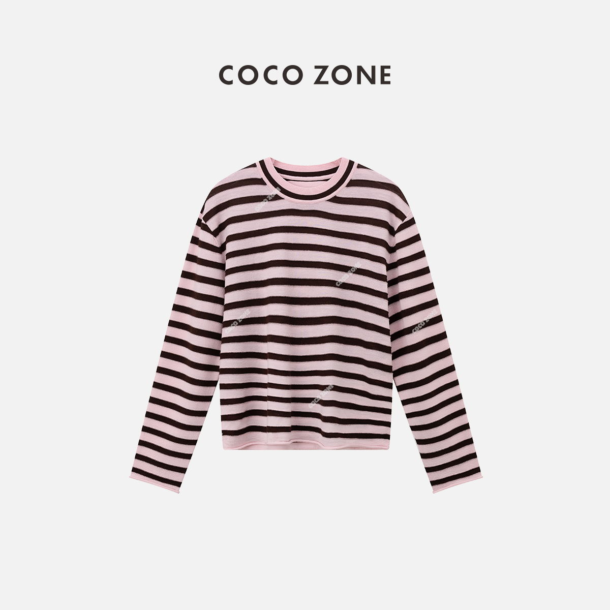 COCO ZONE2024春季百搭圆领长袖毛针织衫条纹短款上衣CC1A0377
