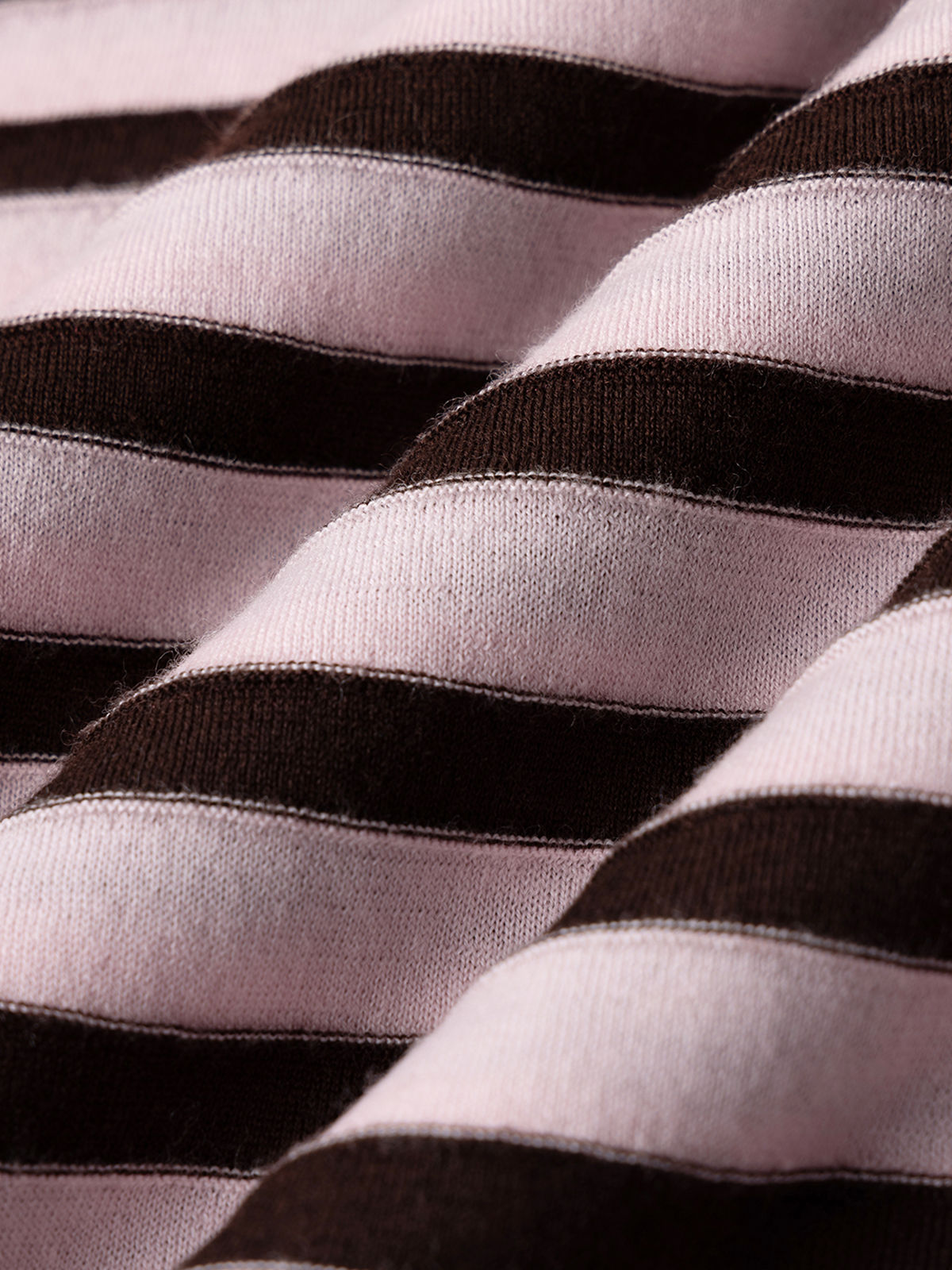 COCO ZONE 刘一一 【100棉】纽扣圆领条纹撞色长袖T恤 CD2A2323