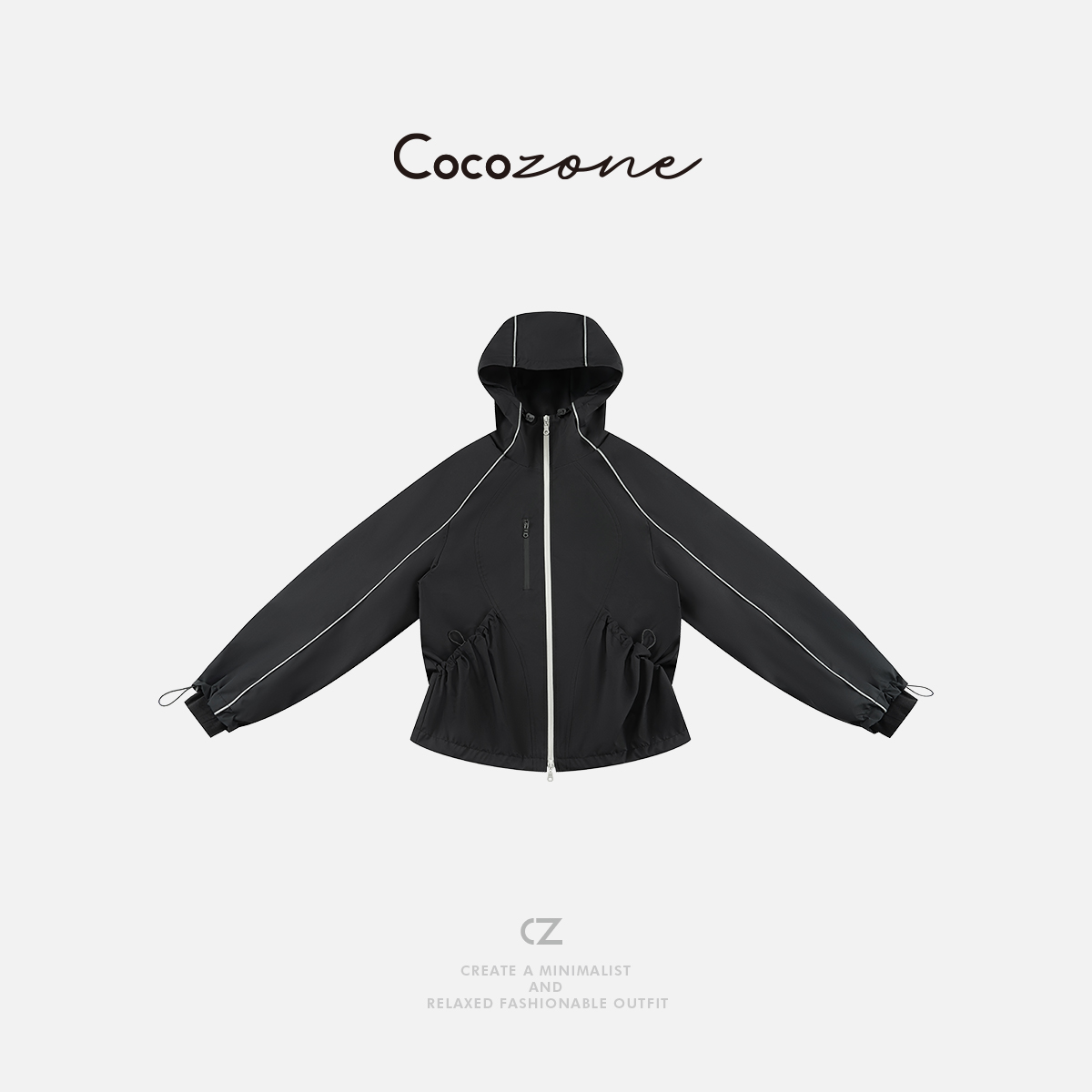 COCO ZONE 刘一一 春季户外袖口可抽绳连帽双头拉链外套CD2A0004