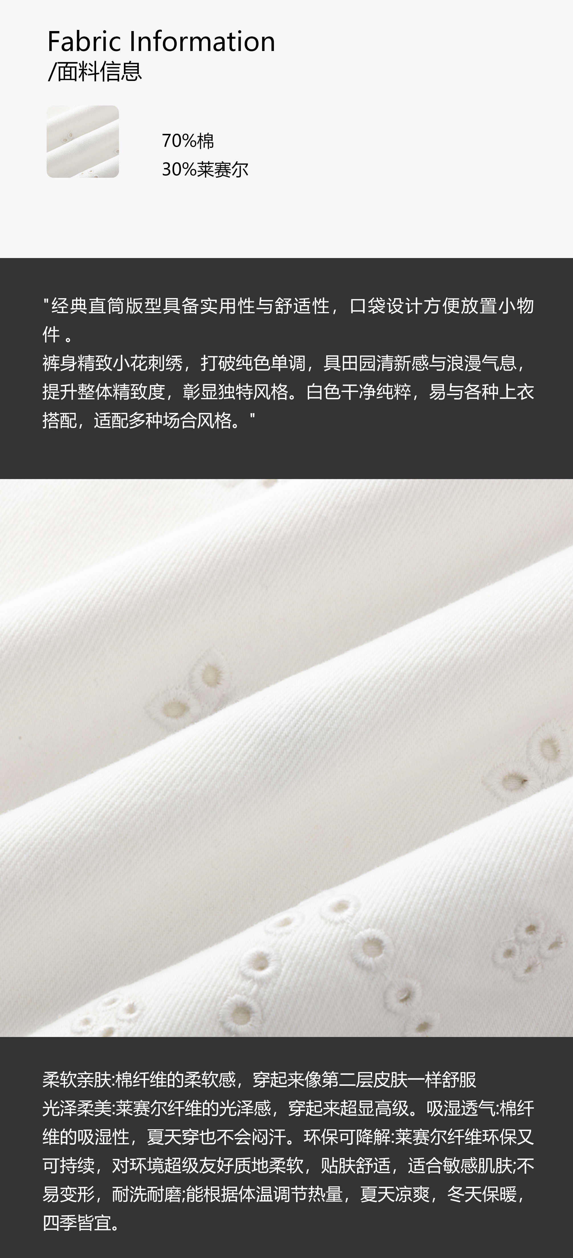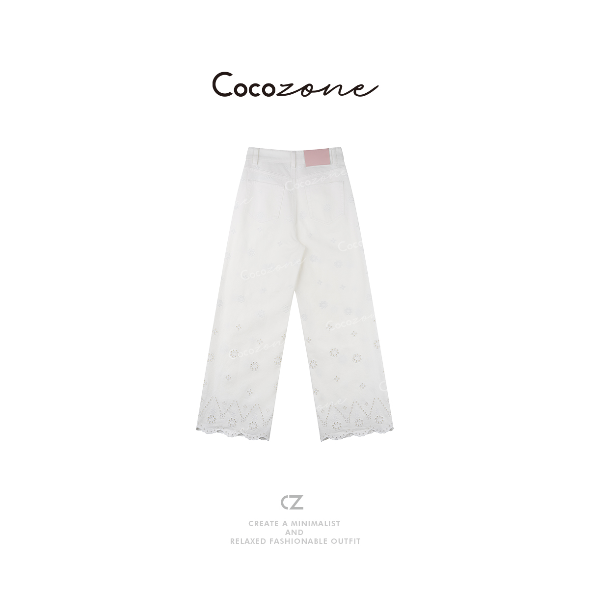 COCO ZONE 刘一一 【棉莱赛尔混纺】直筒刺绣镂空牛仔裤CD1A0722