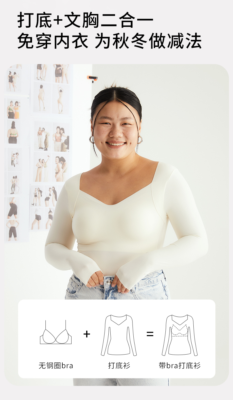 半醒Ms打底衣01 保暖内衣女文胸一体固定杯 SH0012
