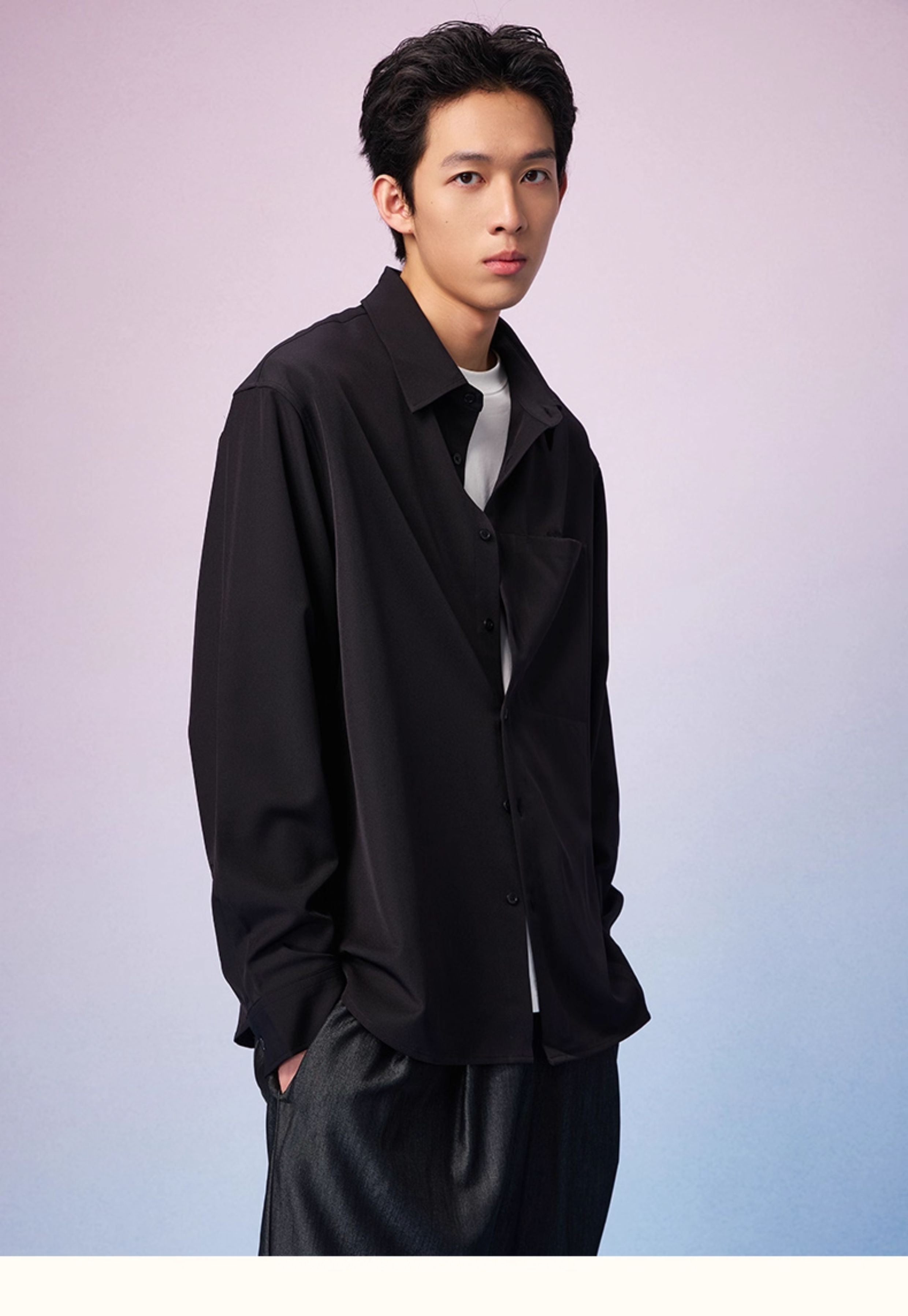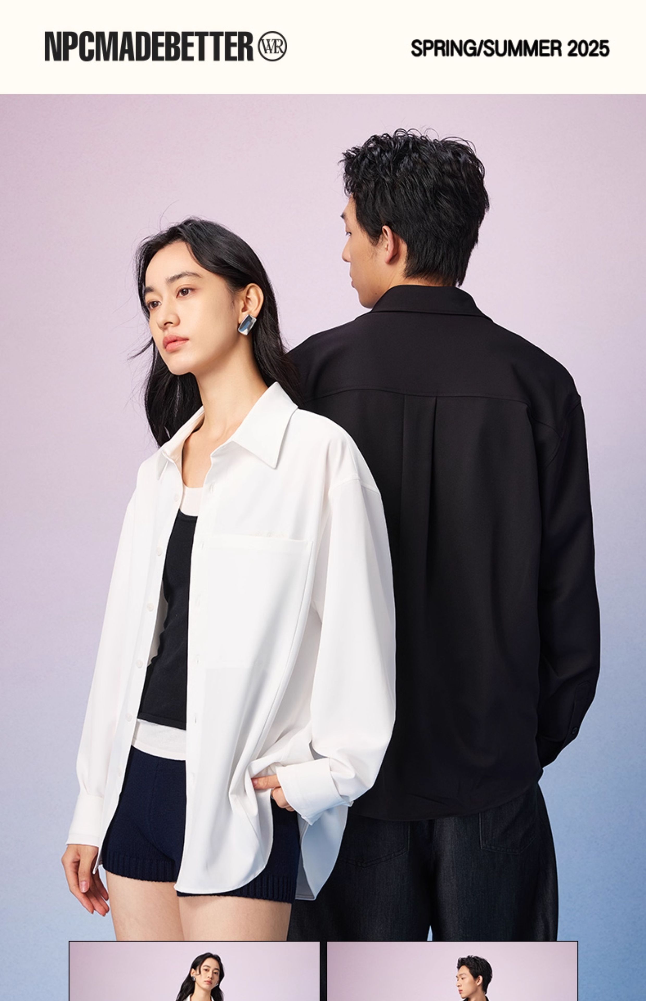 NPC潮牌夏季长袖宽松抖抖无痕衬衫经典男士休闲中性风NP57SH18