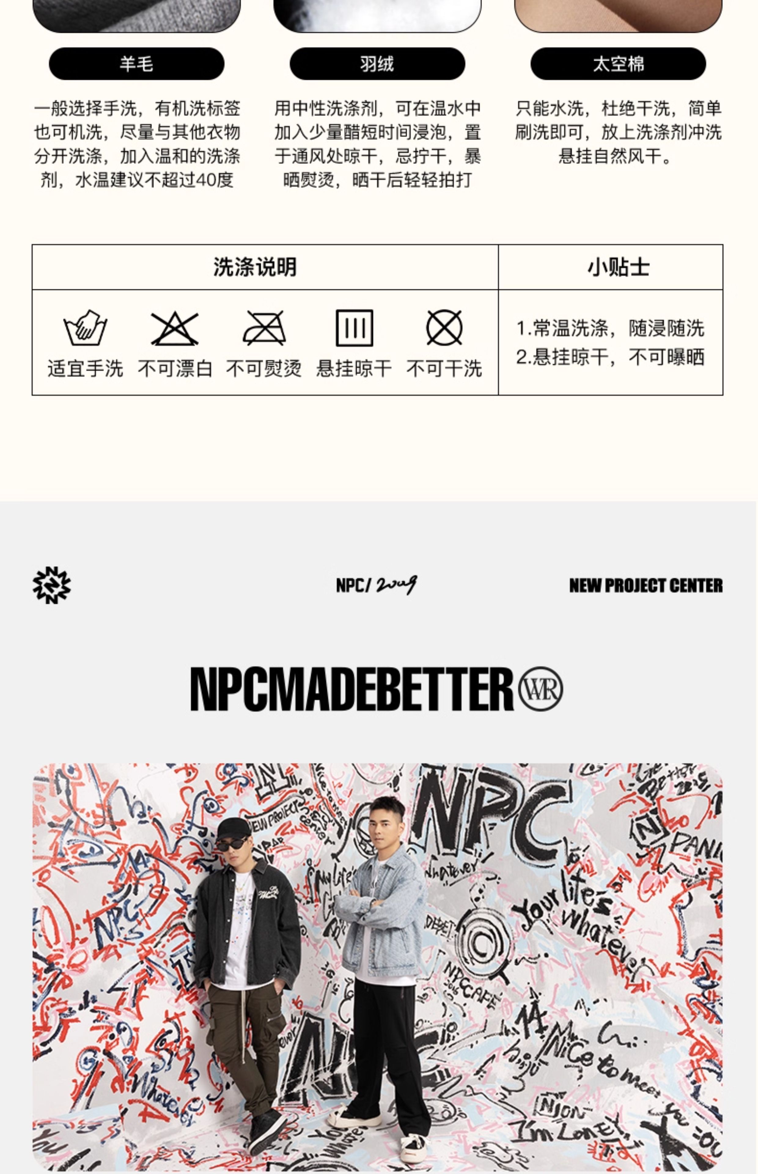 NPC潮牌口袋字母刺绣双面摇粒绒拉链衫男夹克双头拉链NP4BTJ07