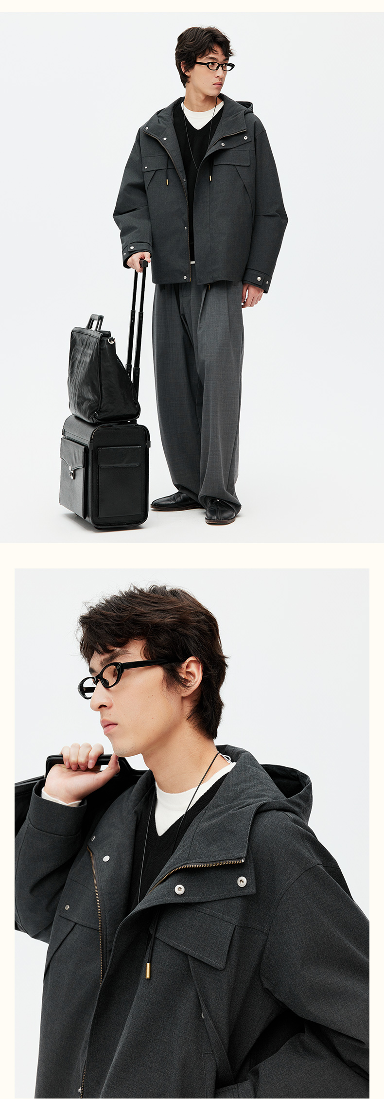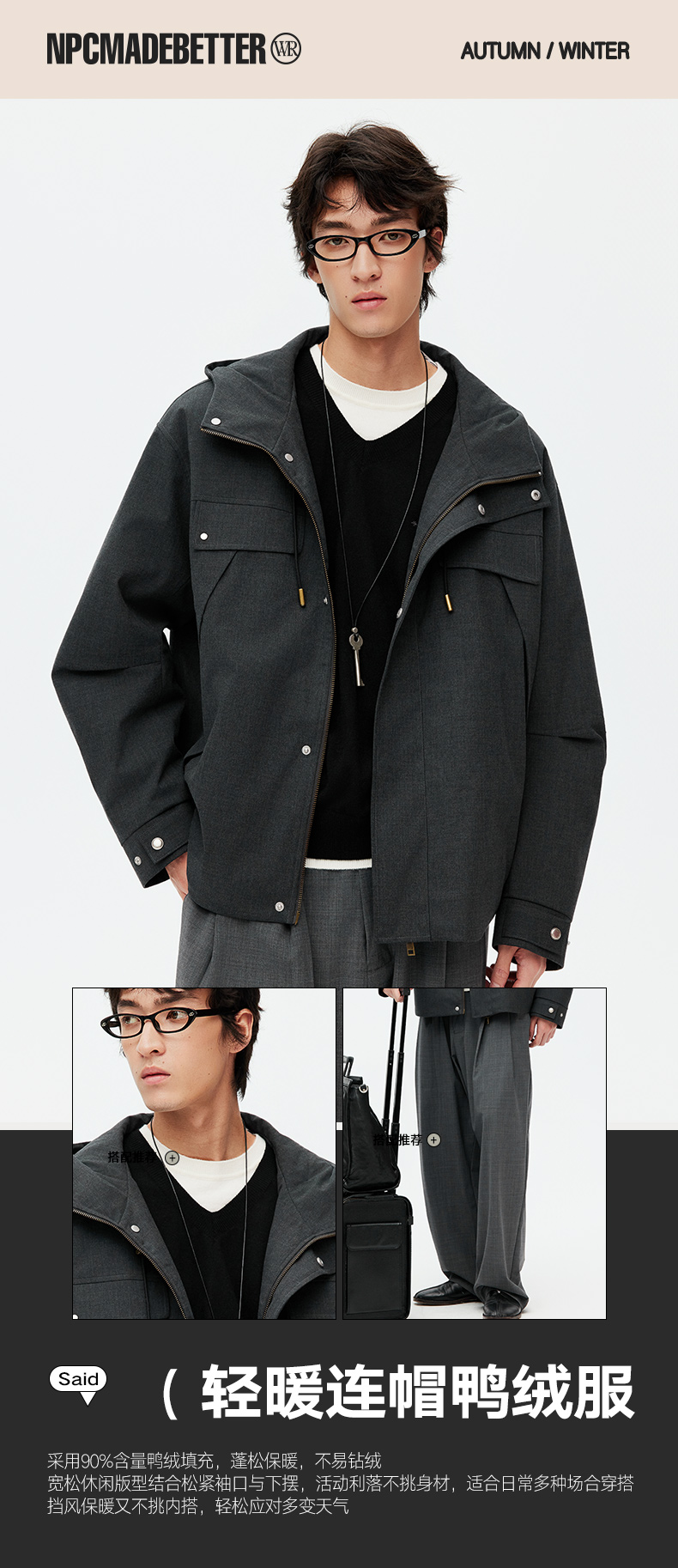 NPC潮牌防泼水90%鸭绒立体剪裁多口袋连帽派克羽绒服NP58DJ46