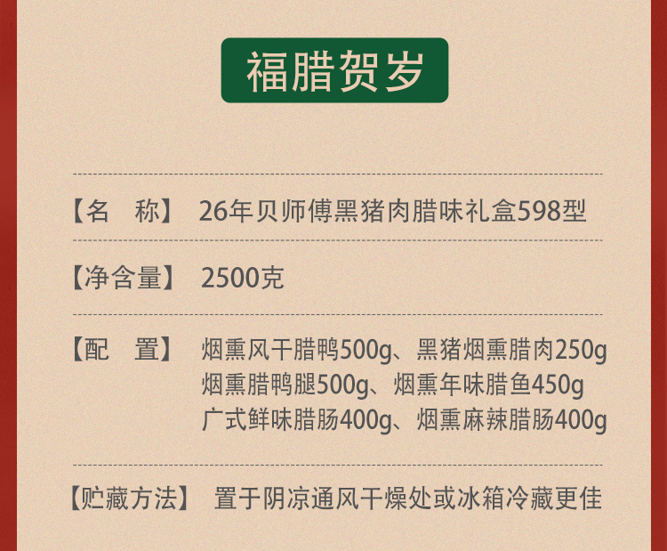 26年贝师傅黑猪肉腊味礼盒598型-福腊贺岁