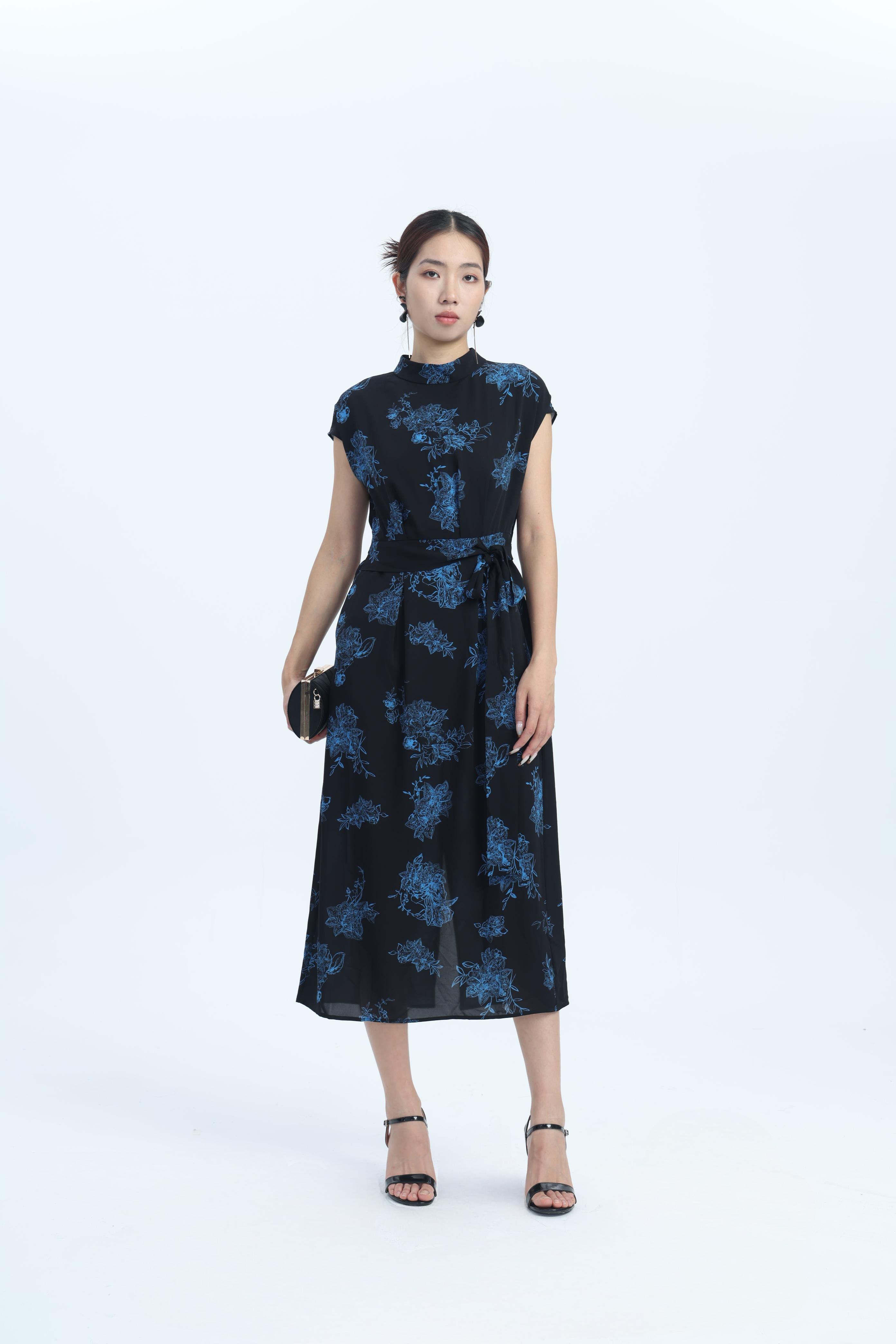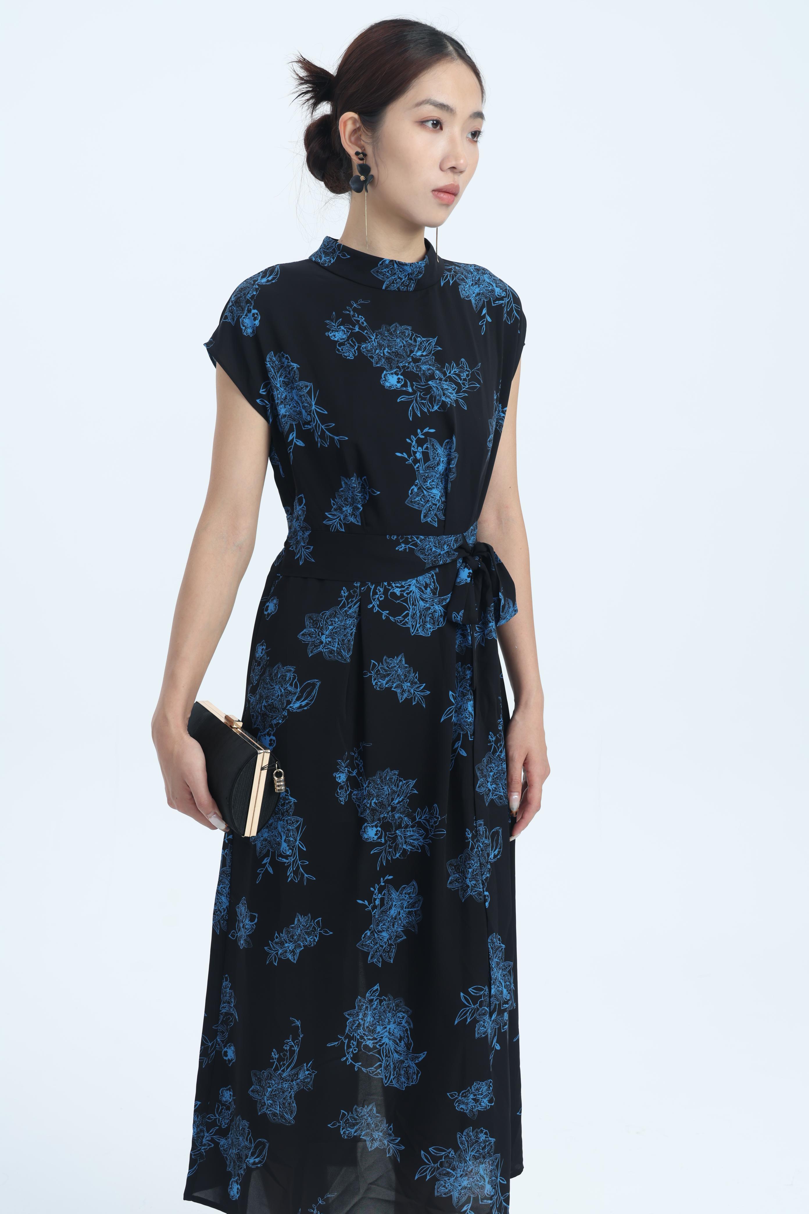 SZ2S39_监德色_连衣裙_夏季_新中式立领透视感雪纺系带收腰盖肩袖中长款_高级女装_BERNIEELEN 伯妮斯茵