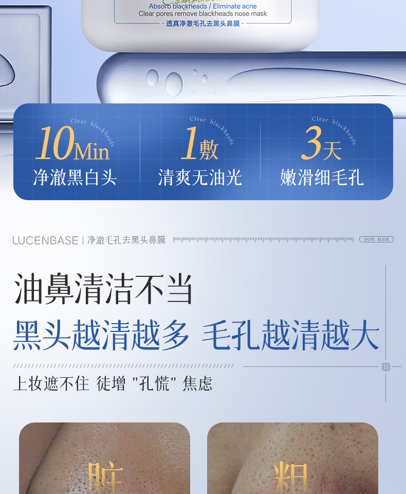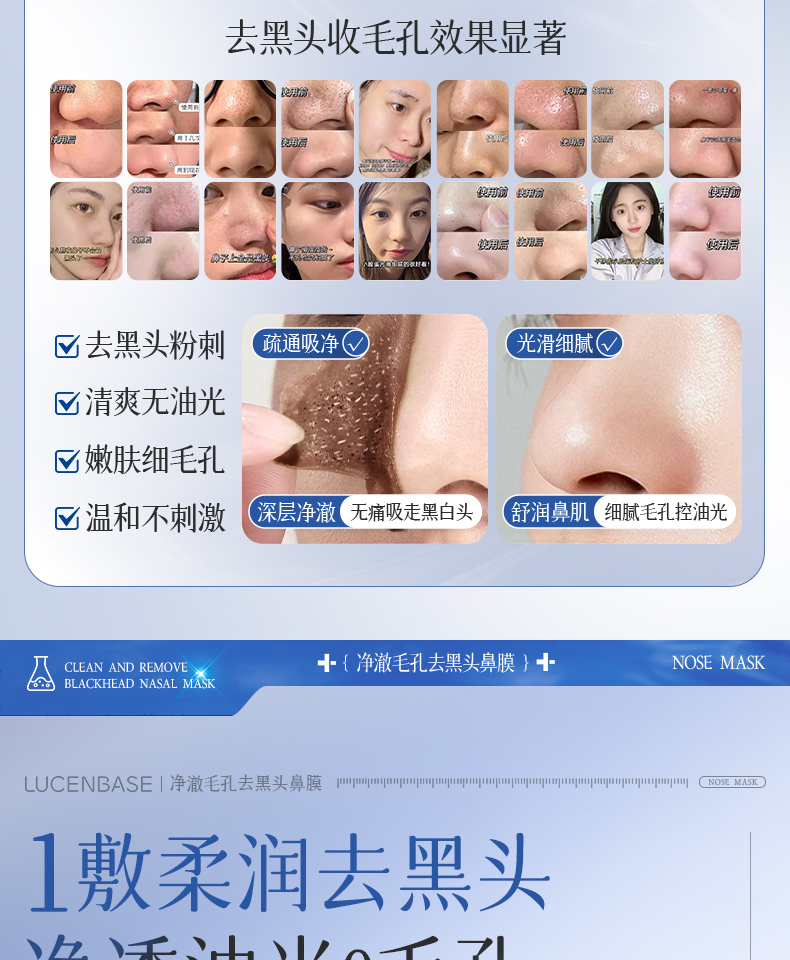 【1敷走黑白头 控油收毛孔】水杨酸去黑头收缩毛孔粉刺深层清洁鼻膜鼻贴吸祛撕拉面膜神器男女