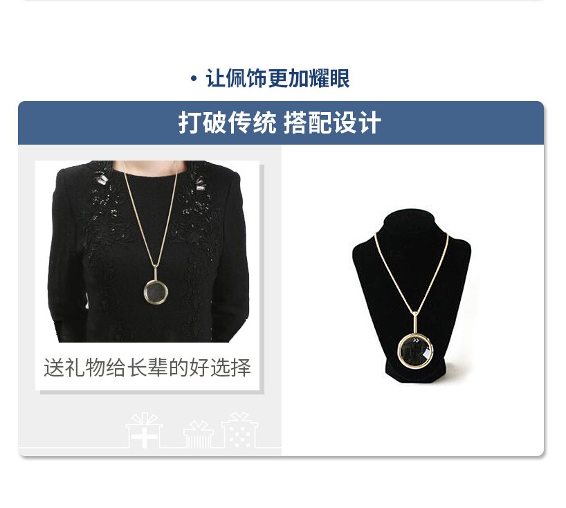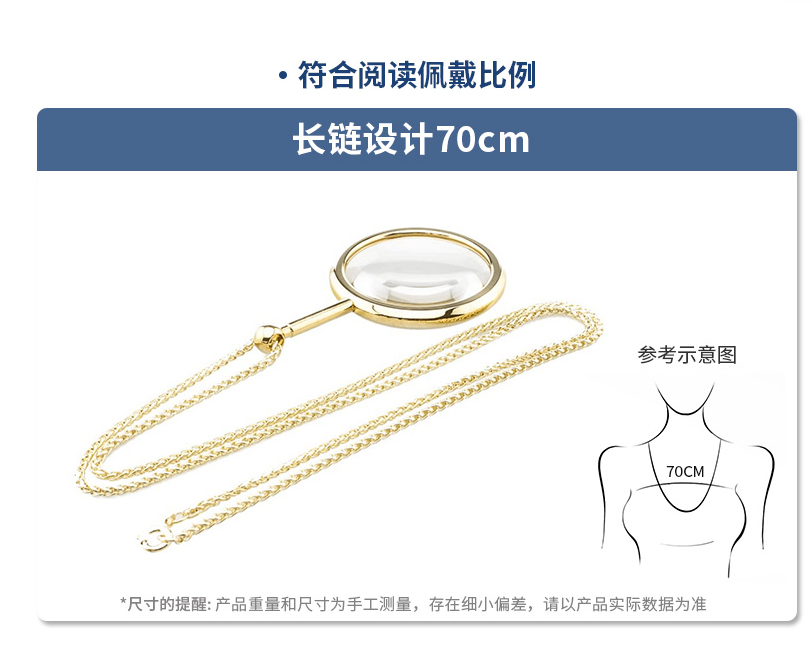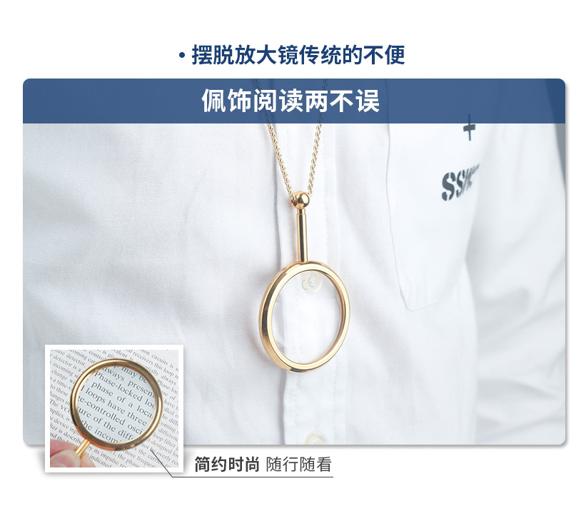 项链式放大镜方便悬挂和携带,方便戴取使用。
