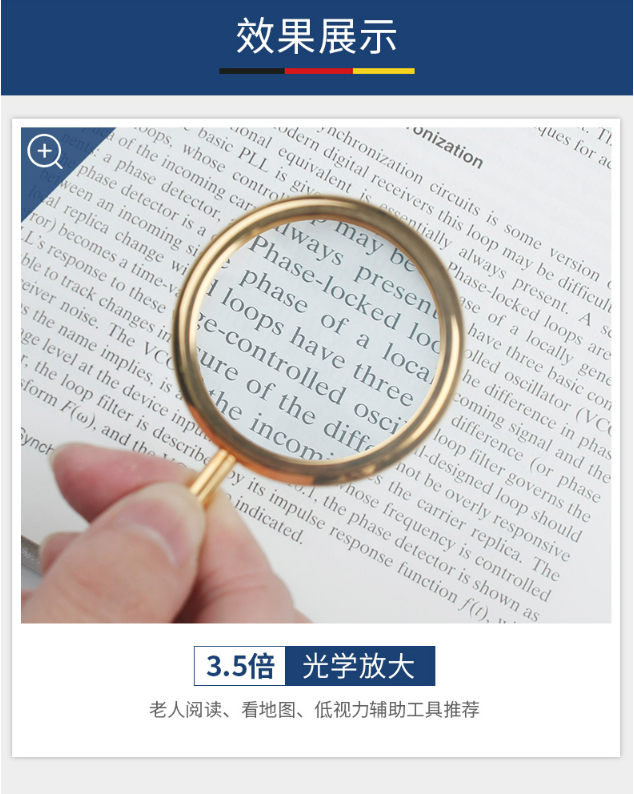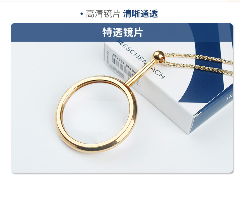 产地:德国 尺寸:4.0cm 镜片 双凸透镜 倍数3.5倍 链长:70cm 颜色:白金色 玫瑰金