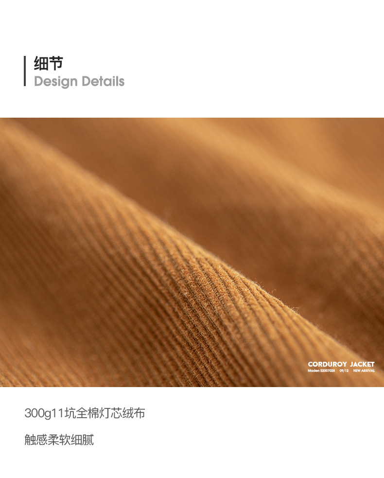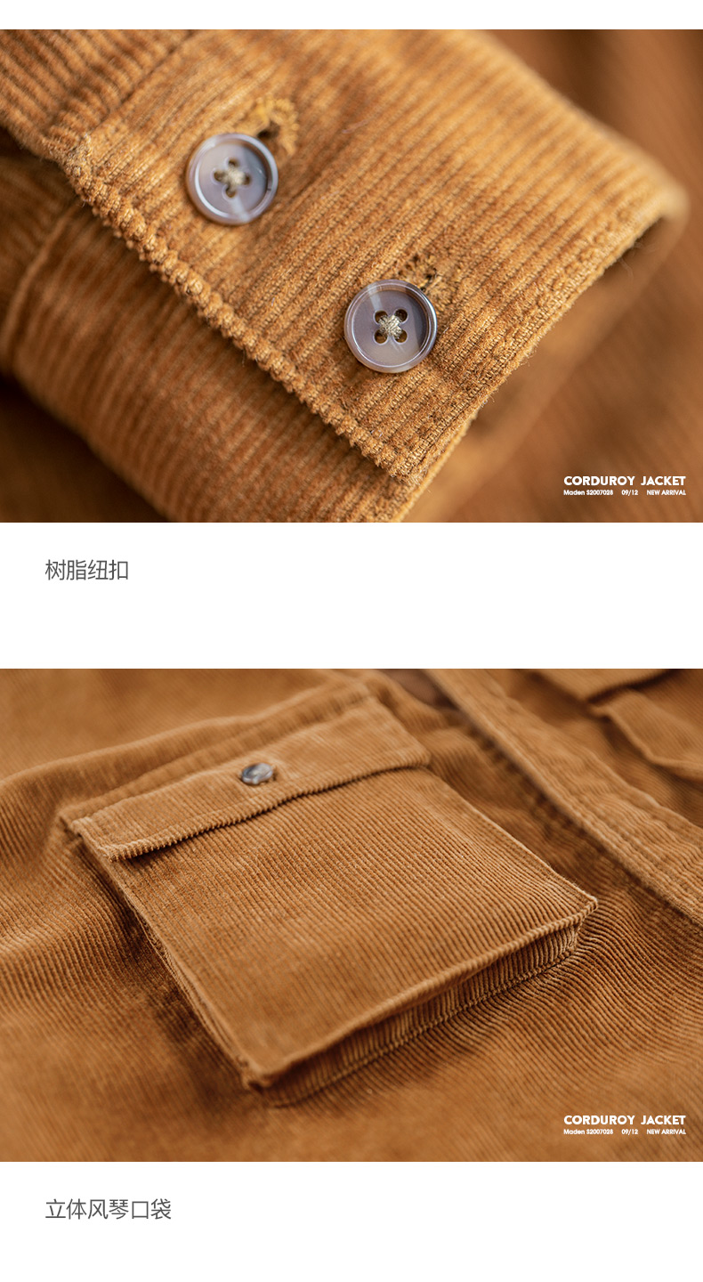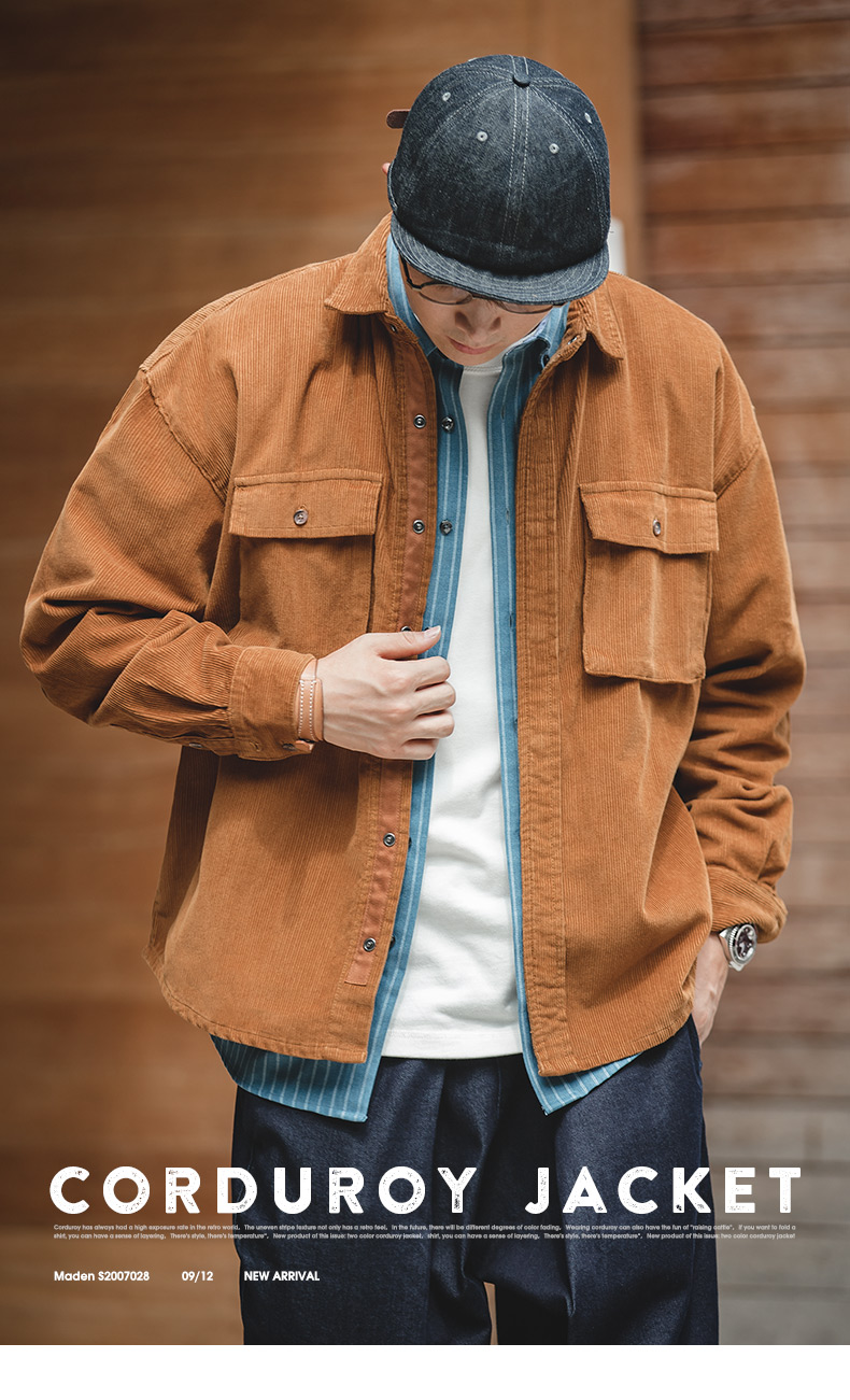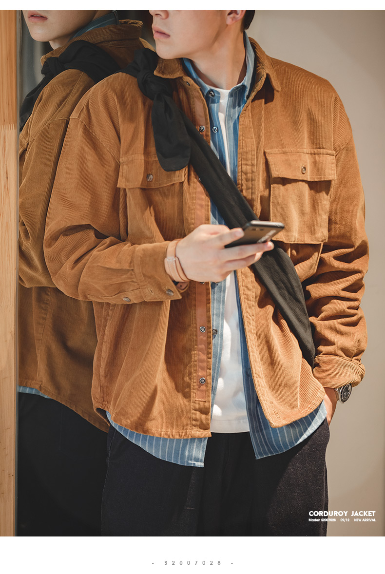 工装优选 美式复古宽松夹克灯芯绒翻领古着痞帅外穿口袋薄衬衫男春