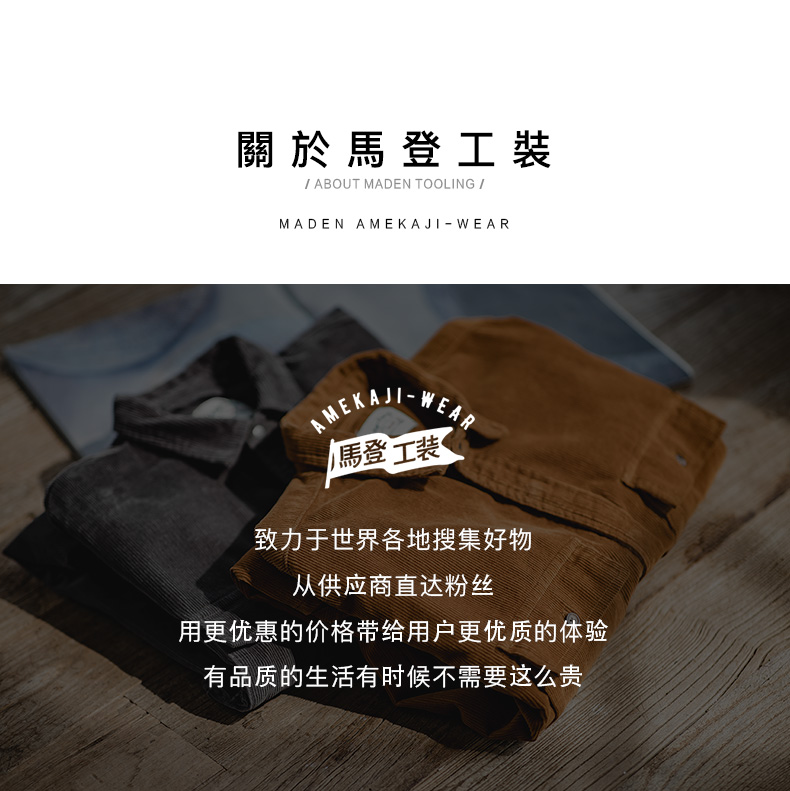 马登工装美式复古双膝灯芯绒伐木裤条绒直筒保暖卡其色休闲裤男冬