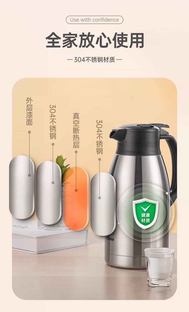 zojirushi象印日本不锈钢手提式保温瓶大容量长效双保温银色款