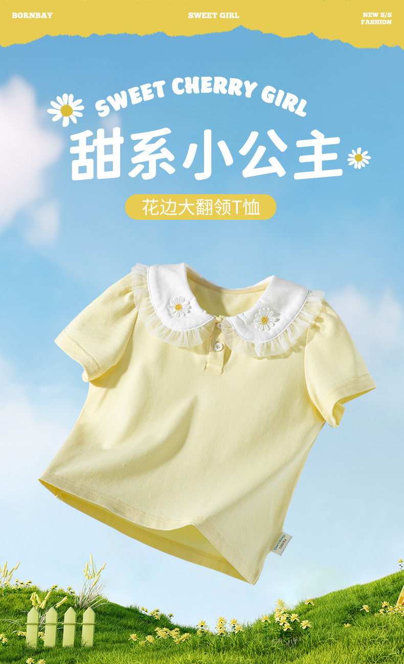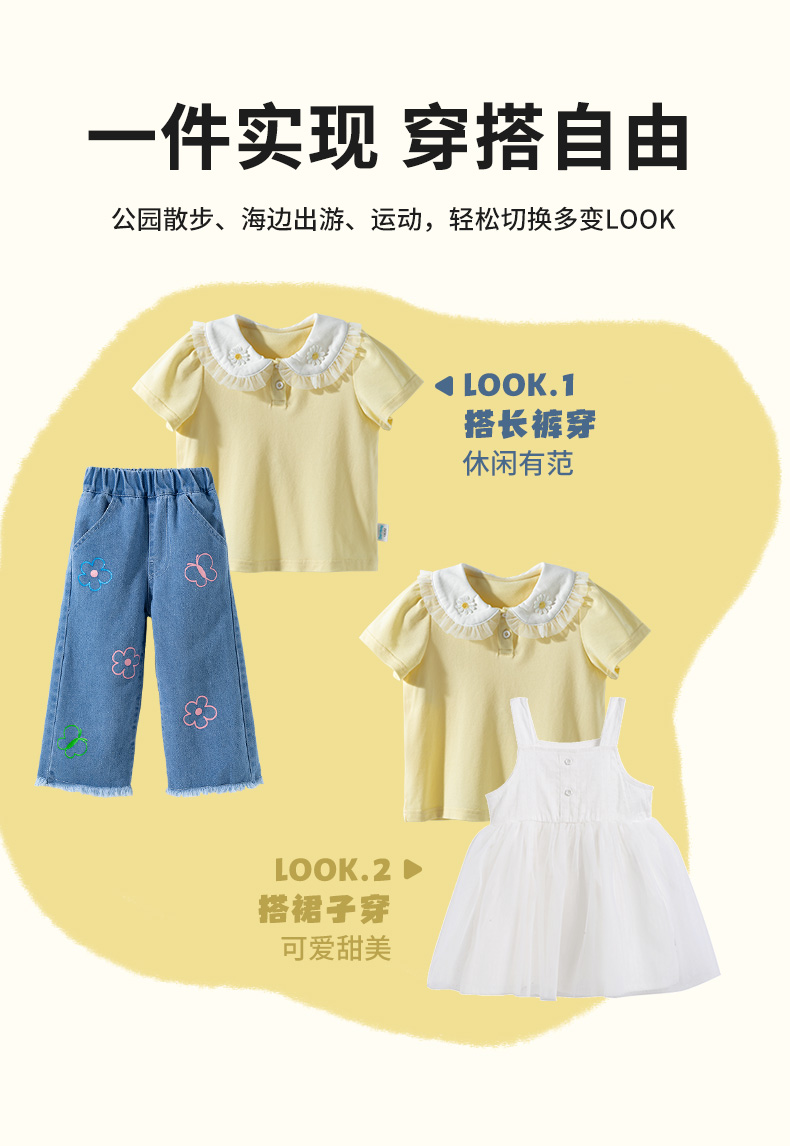 贝贝怡2025年新款女童百搭上衣短袖T恤