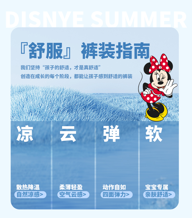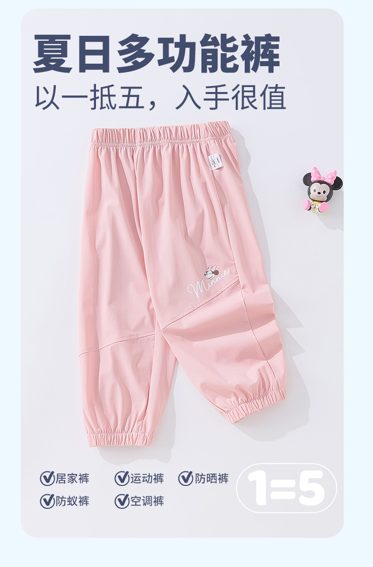 迪士尼【米妮凉感防蚊裤】夏季新款女童冰感休闲裤儿童运动跑步裤空调裤ZD2EK014