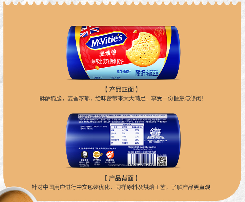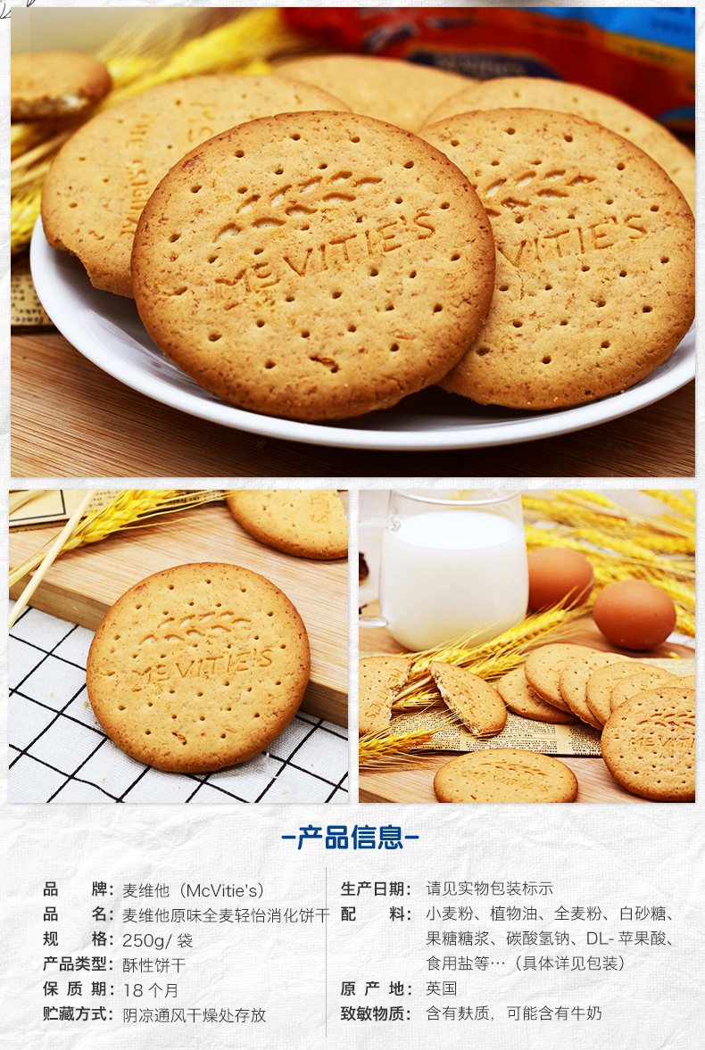 【品名】英国麦维他 轻怡经典原味消化饼组合装 【规格】 轻怡:250g/袋 有效期至24年3月 原味全麦:400g/袋 有效期至24年4月 高纤全麦:400g/袋 有效期至24年7月 【保质期】18个月 【发货包装】独立包装袋 【发货地】上海/天津 【发货快递】圆通,申通,邮政 【不发货区域】新疆、西藏、港澳台 【发货时效】48-72小时,周末节假日顺延 |