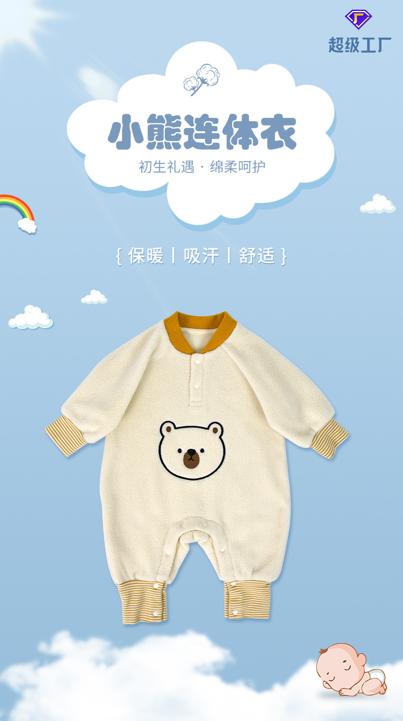 【下单送帽子】爆款ins小熊婴儿衣服摇粒绒爬爬服2022秋冬新哈衣宝宝 连体衣