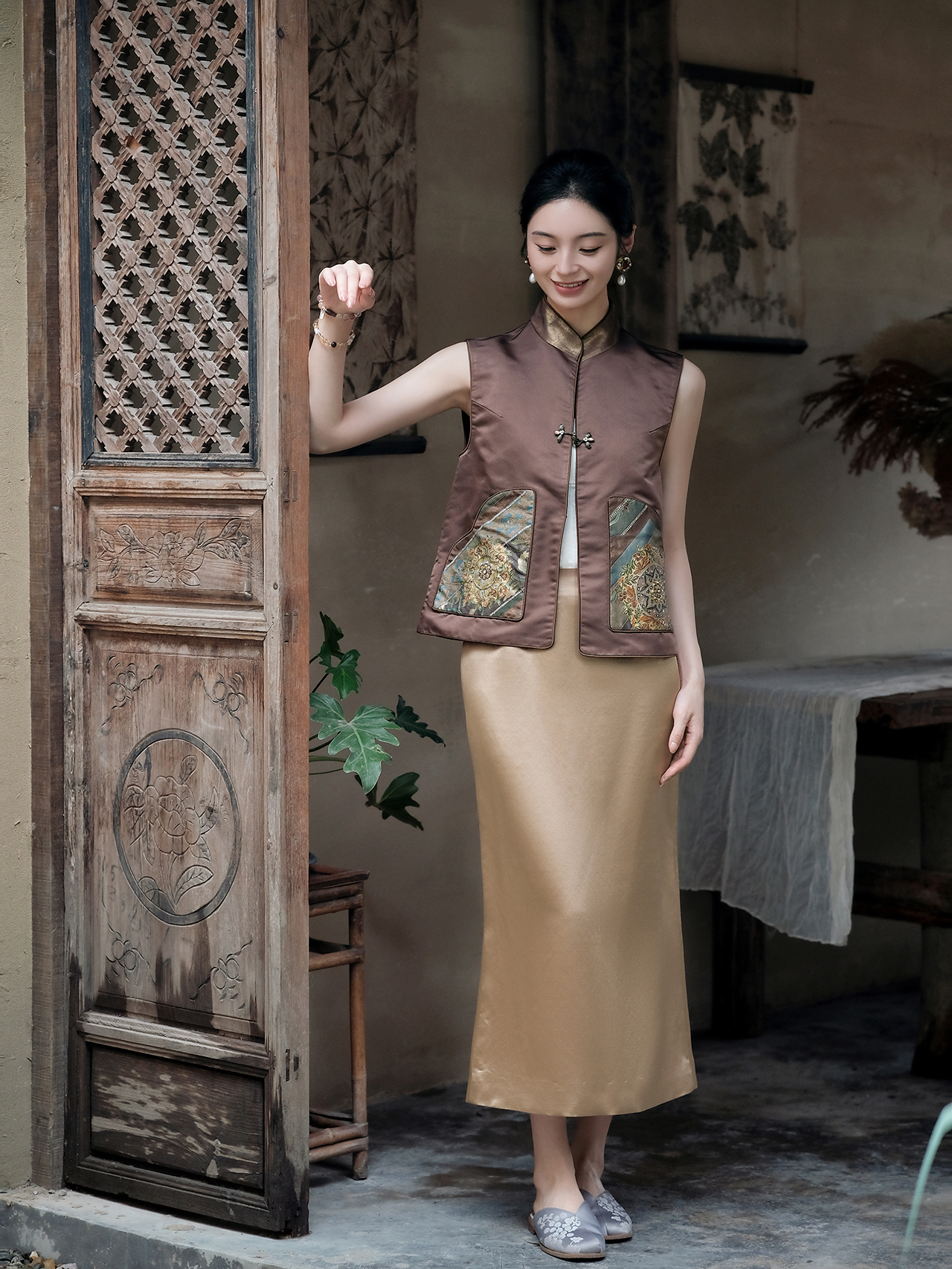 盛唐牡丹 |鹤鹿同春宋锦双面穿马甲