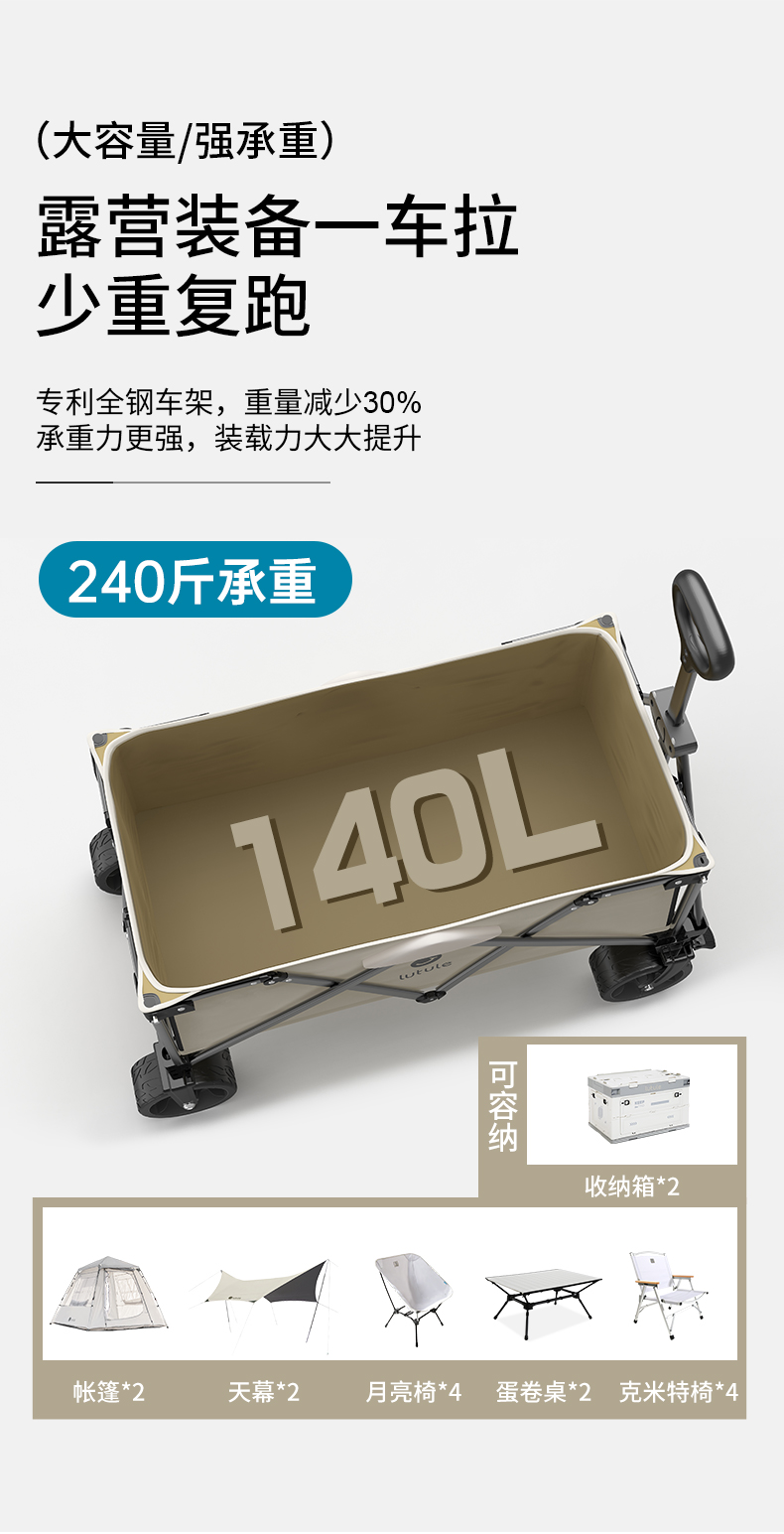 户外露营-140L露营车越野轮双刹款