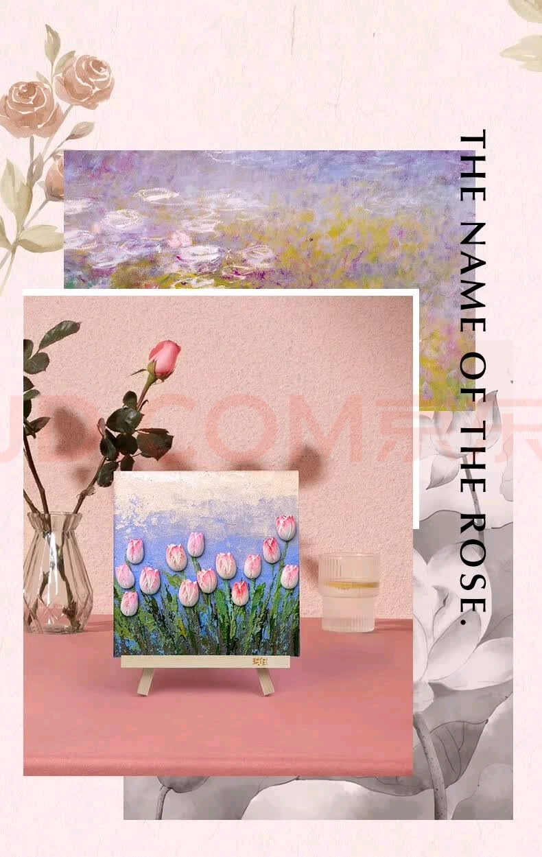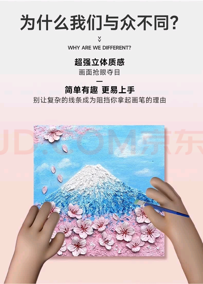 玩作数字油画新款石英砂肌理画学生diy手工立体浮雕画刮画全套工具材料包创意桌面摆件六一儿童节礼物 粉色香郁圆bj