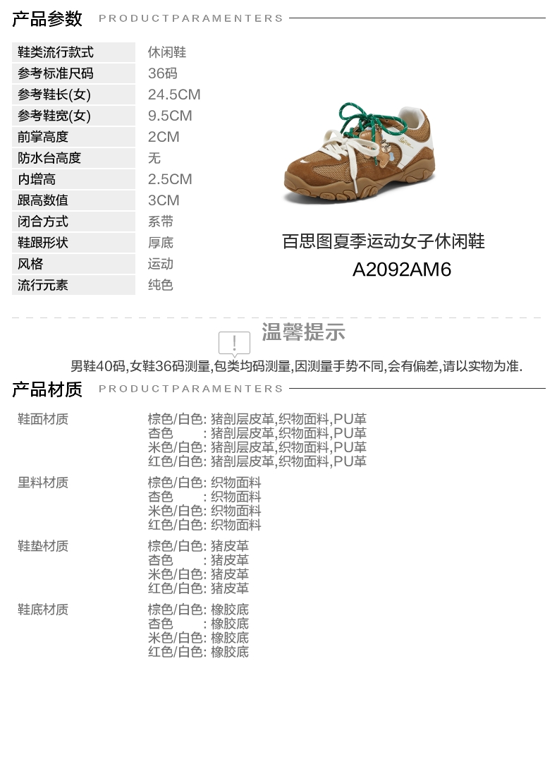 【百思图】【马上有钱】BF楼百思图26春新款德训鞋厚底女运动休闲鞋A2092AM6吊牌价799.现价339