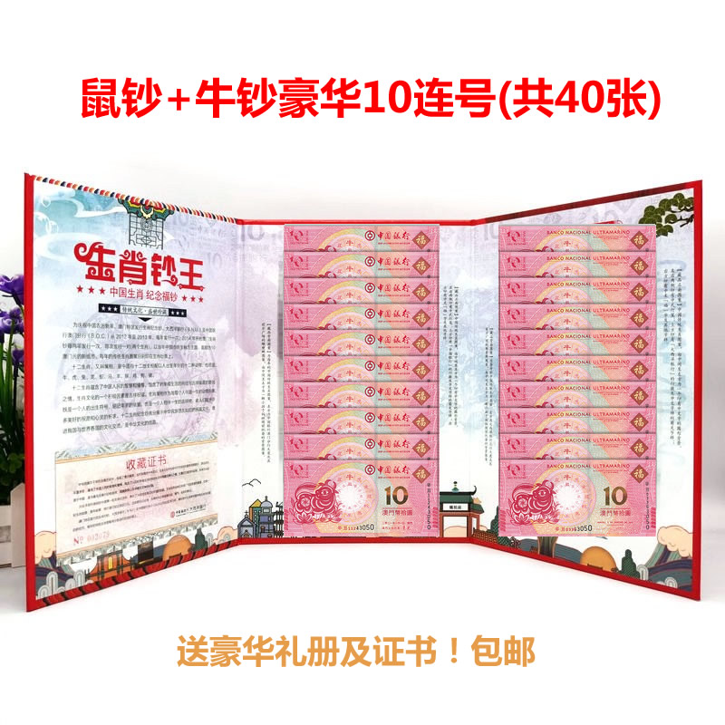 鼠钞+牛钞10连号(共40张)送册带证书!