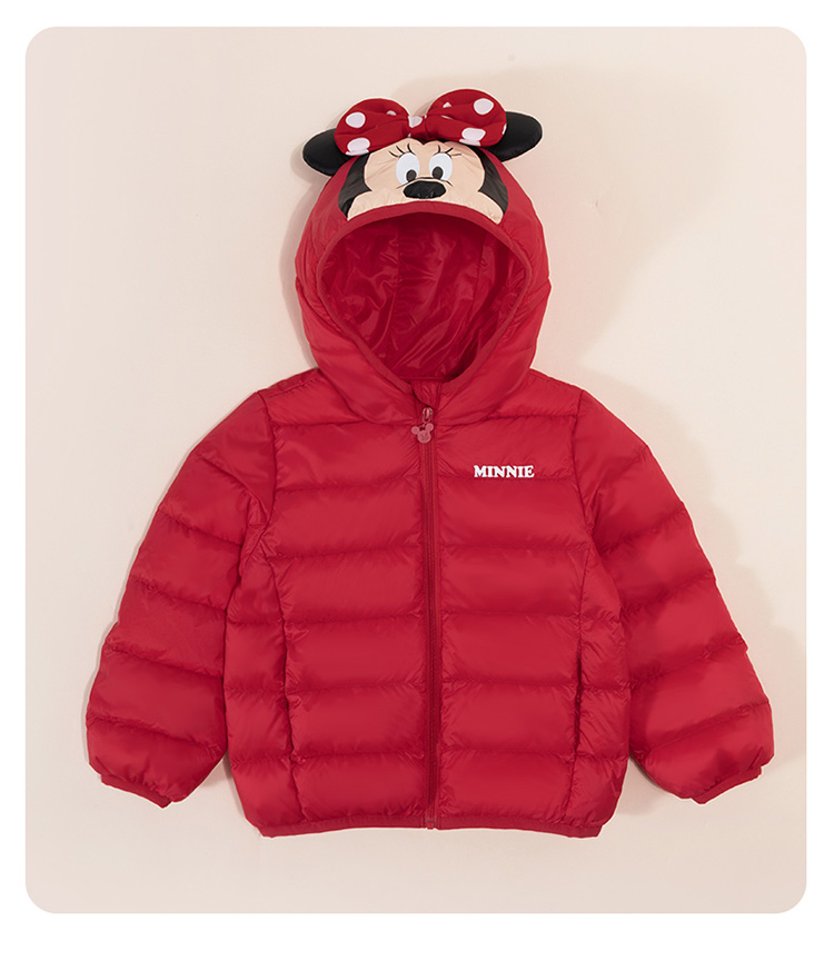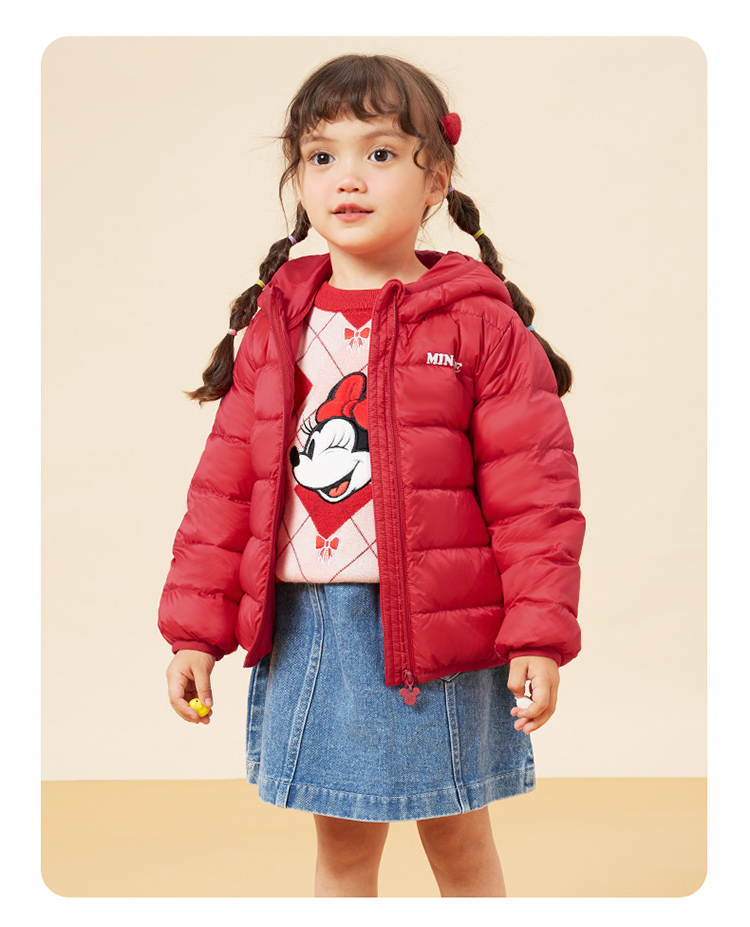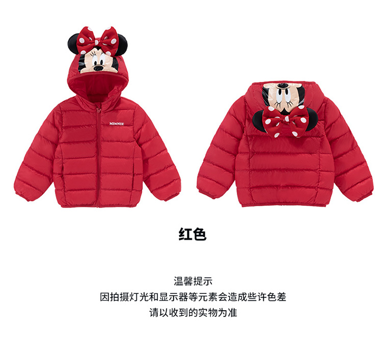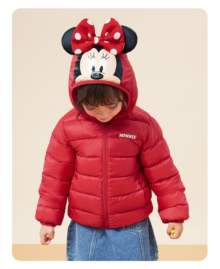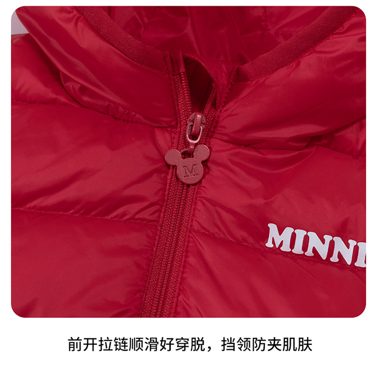 迪士尼秋冬女童连帽防风保暖轻羽绒服喜庆前开外套234S1845