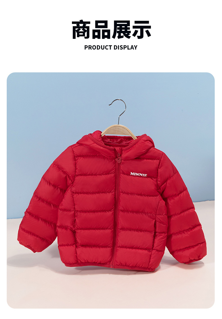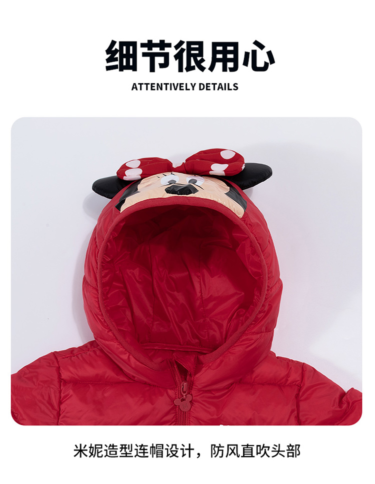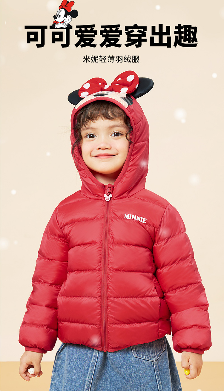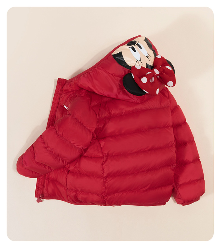 迪士尼秋冬女童连帽防风保暖轻羽绒服喜庆前开外套234S1845