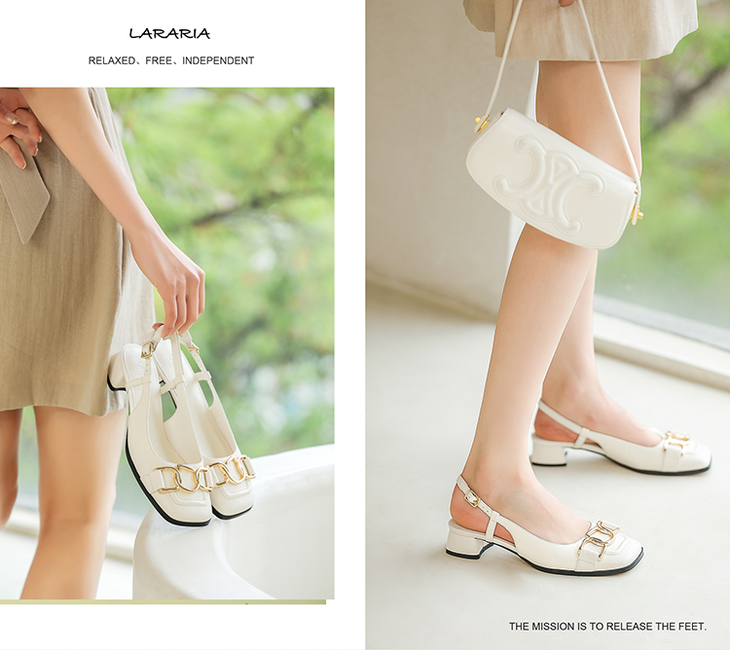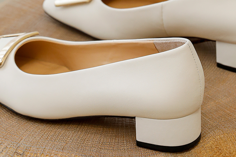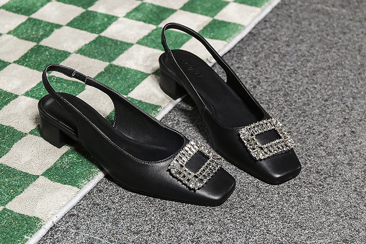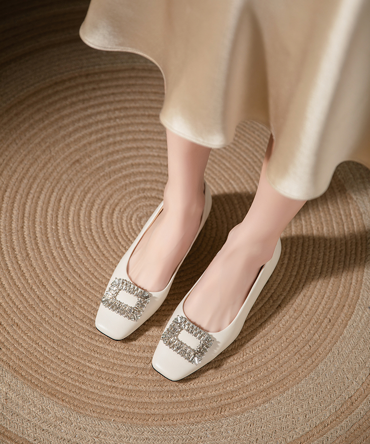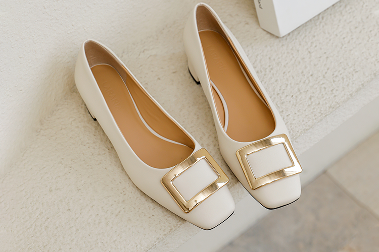 小方头平底设计,露出雪白的脚背,走路稳稳当当。