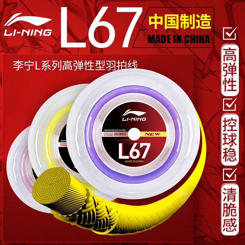 李宁LI-NING羽毛球线大盘线L67NEW 高弹耐打线单盘可拉20支球拍
