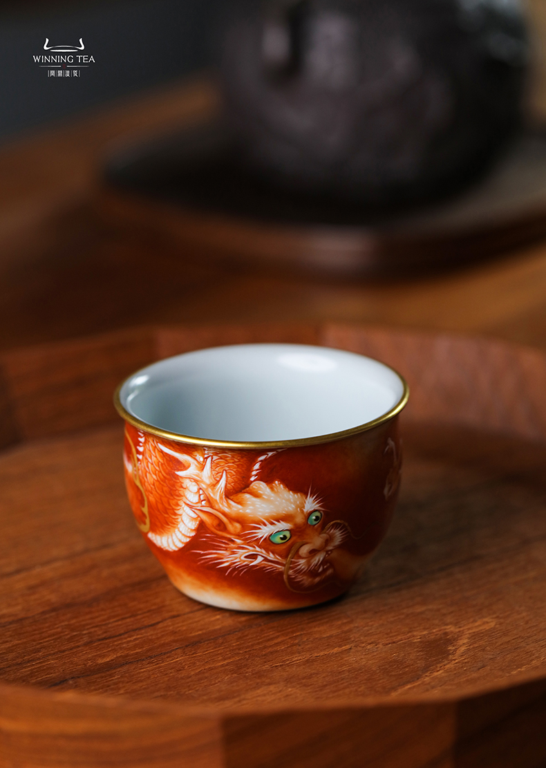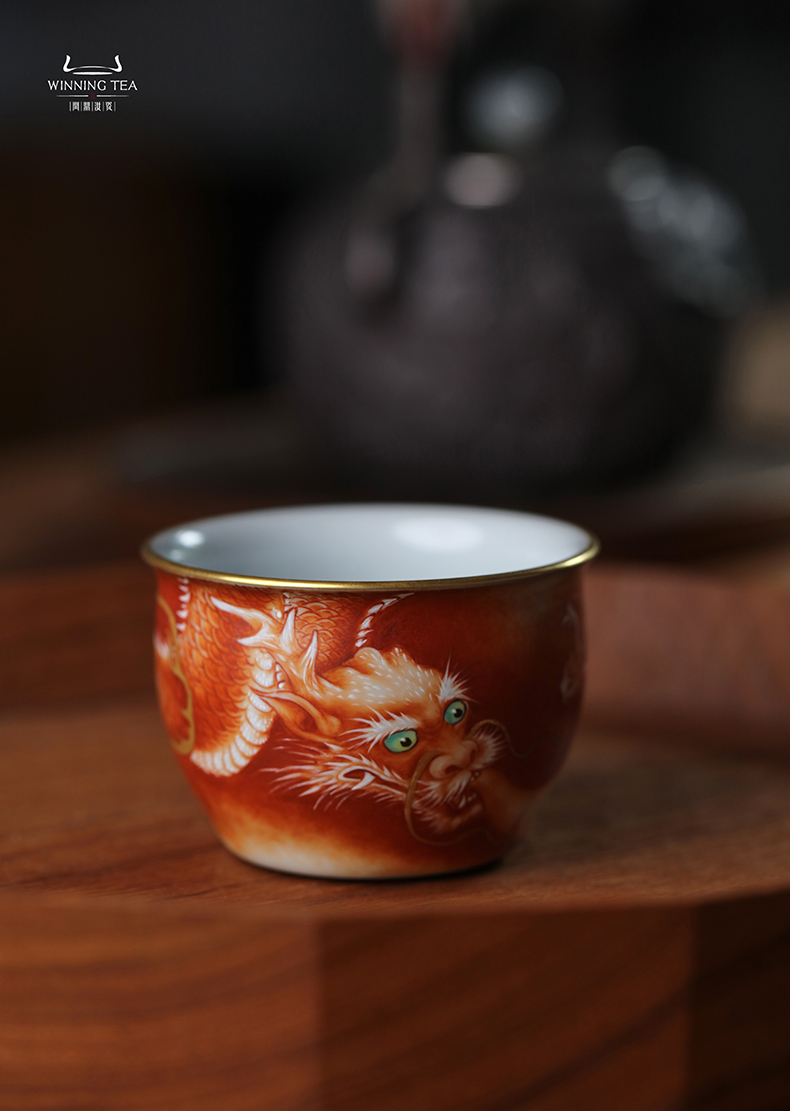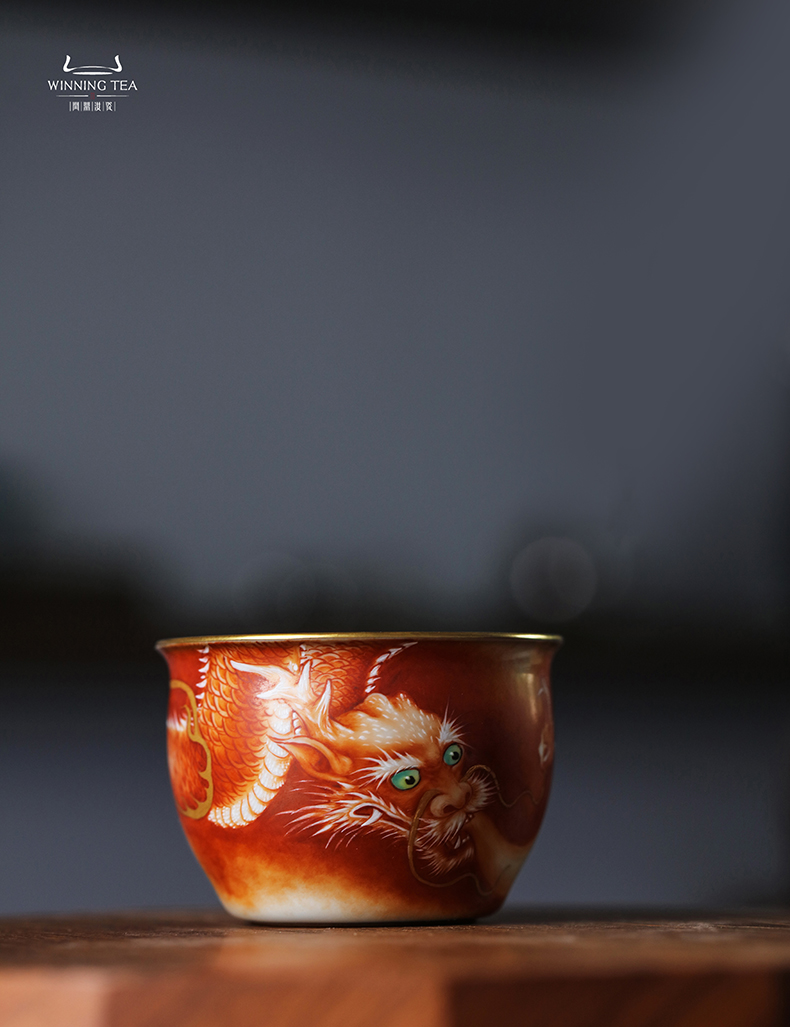 问鼎鼎峰柴窑天青手握杯(龙腾戏珠)