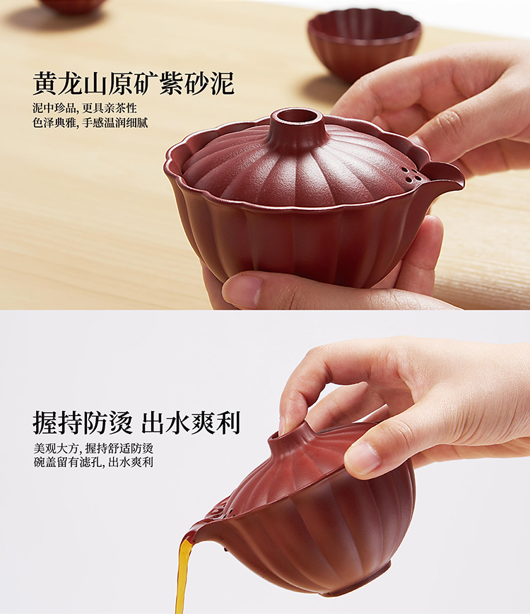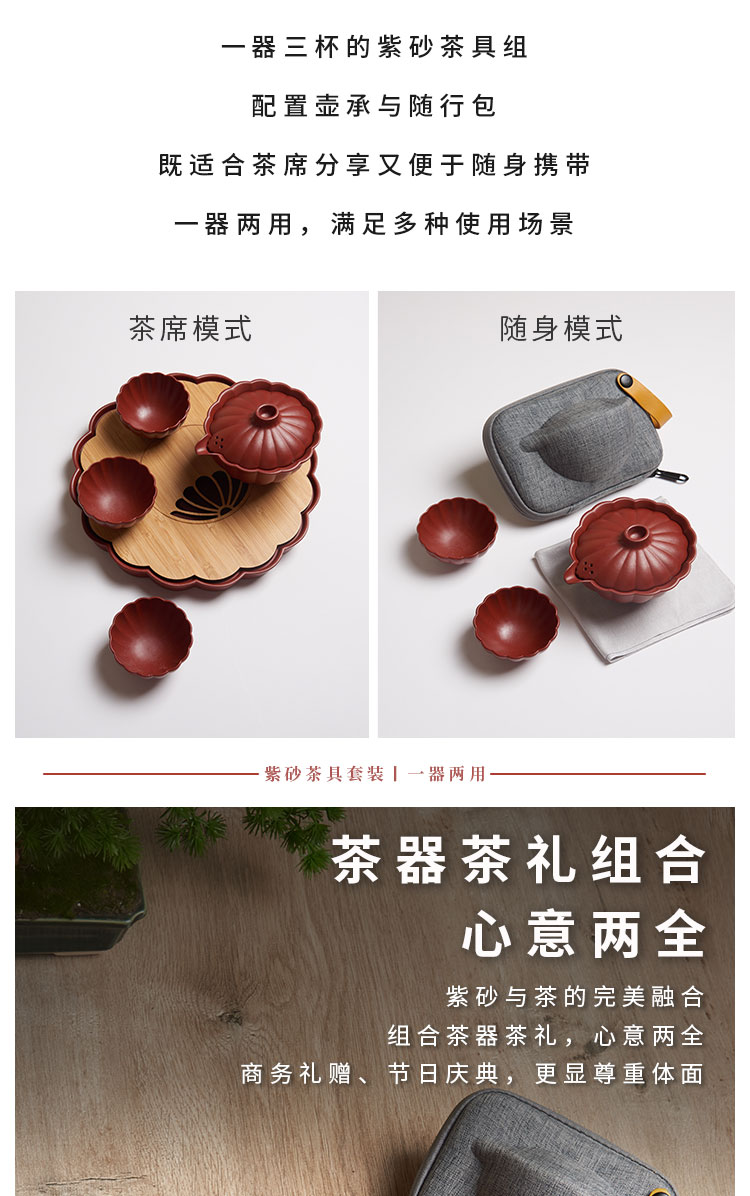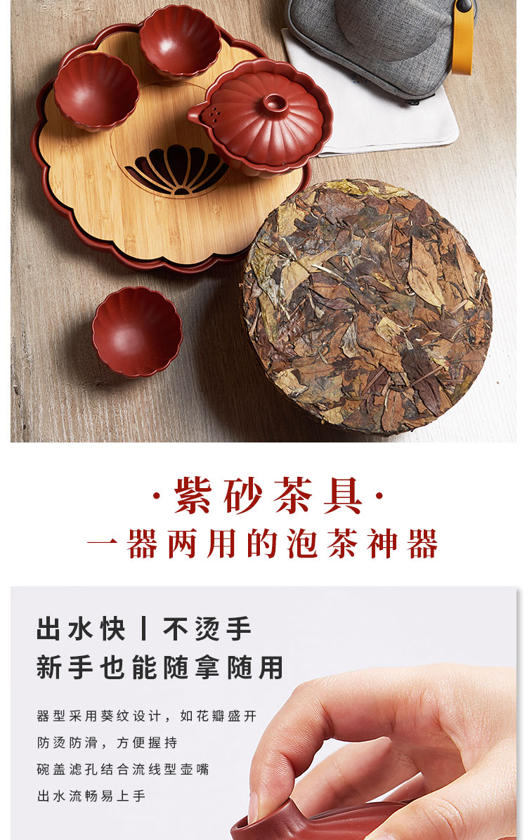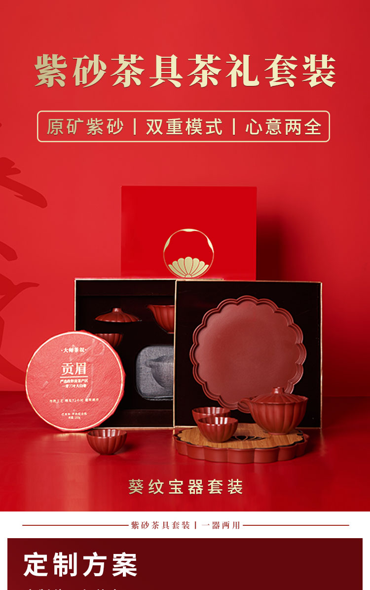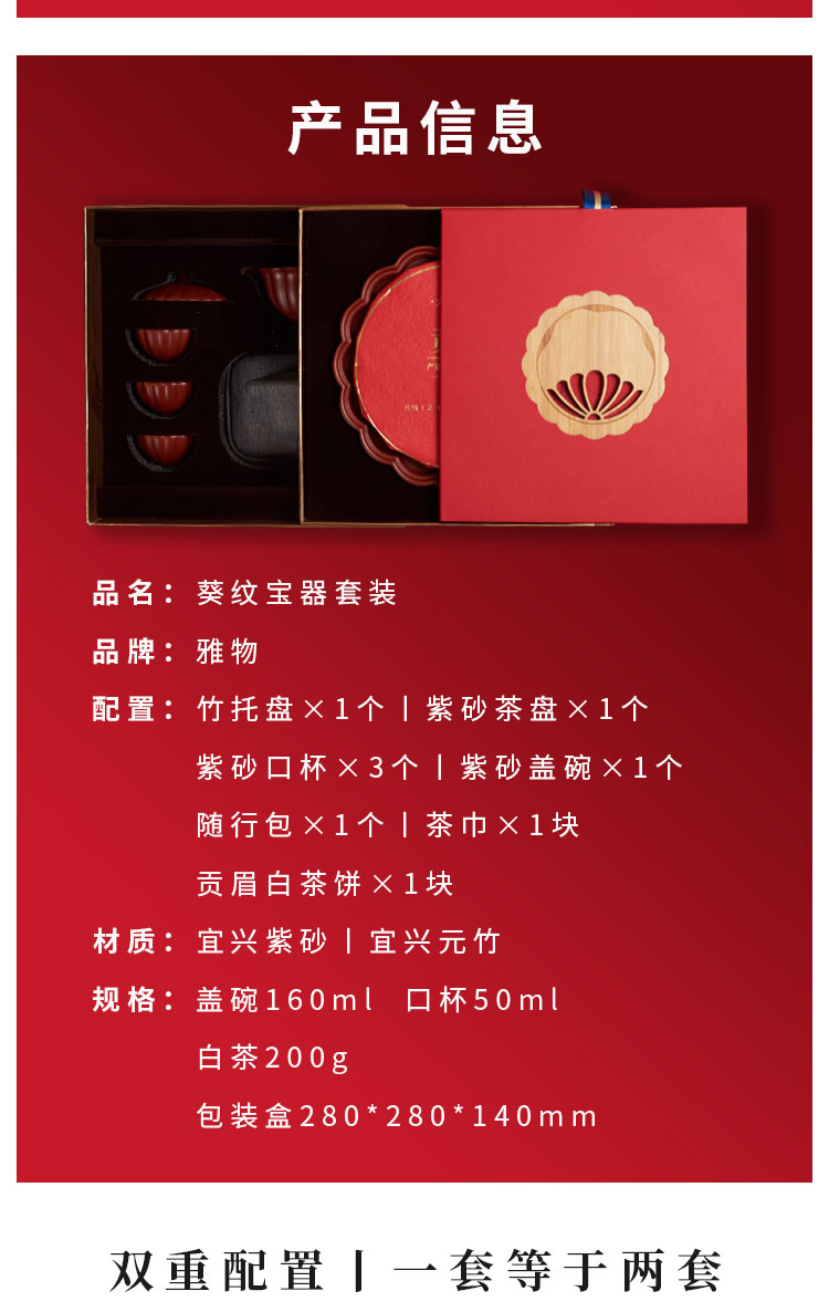 清朴堂 葵纹宝器套装 宜兴原矿紫砂杯子盖碗茶盘便携包茶器贡眉白茶茶饼 商务礼品 送领导定制礼物礼品