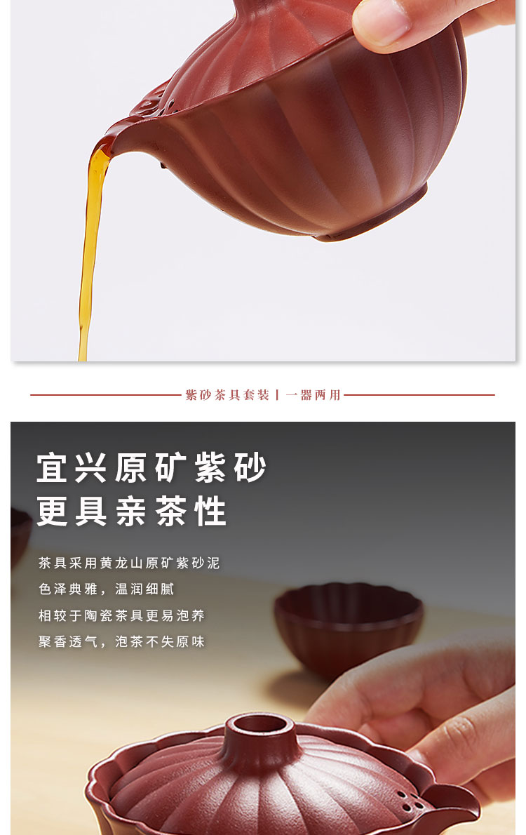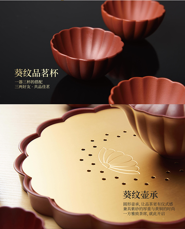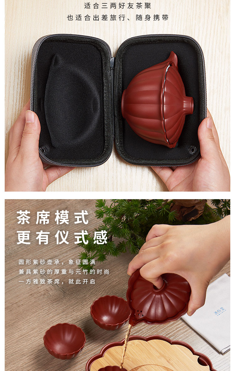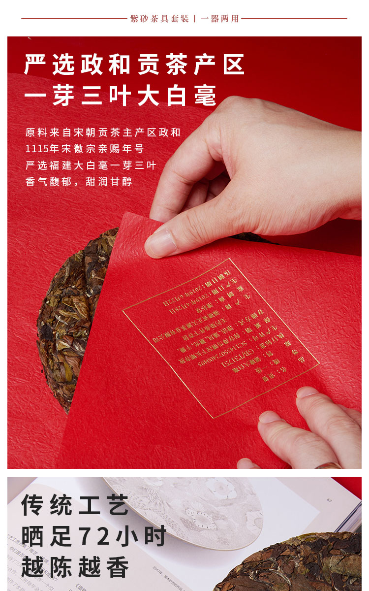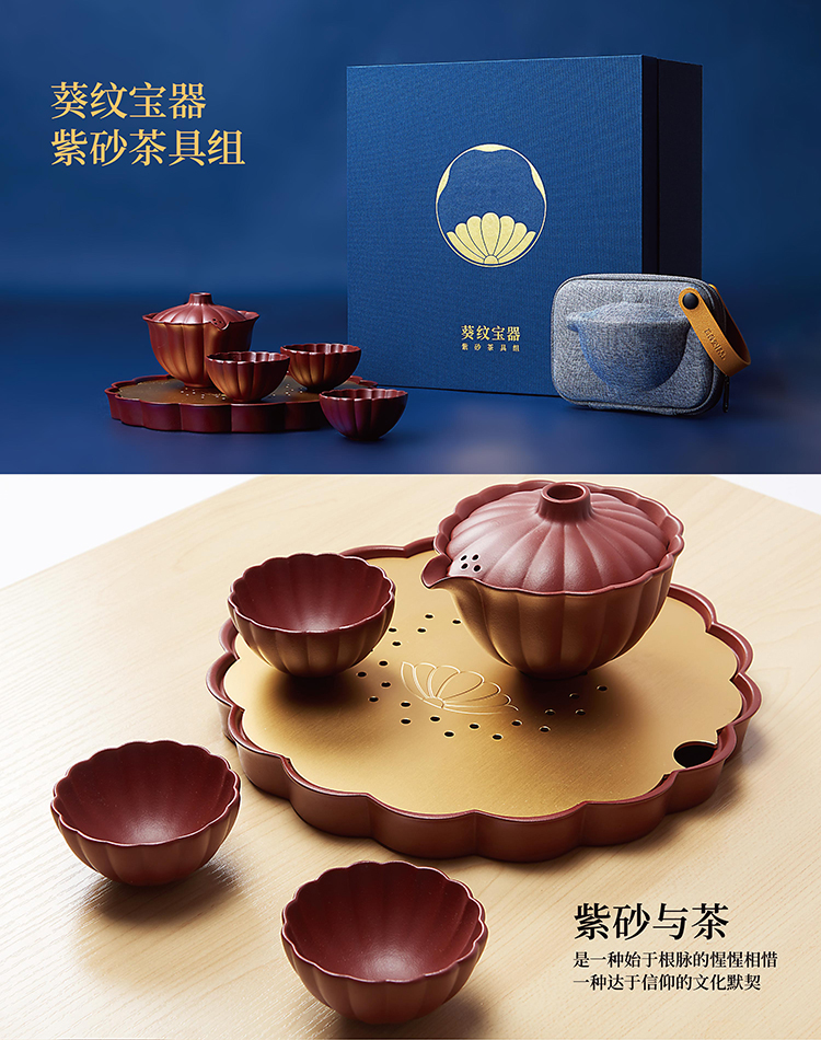 清朴堂 葵纹宝器套装 宜兴原矿紫砂杯子盖碗茶盘便携包茶器贡眉白茶茶饼 商务礼品 送领导定制礼物礼品