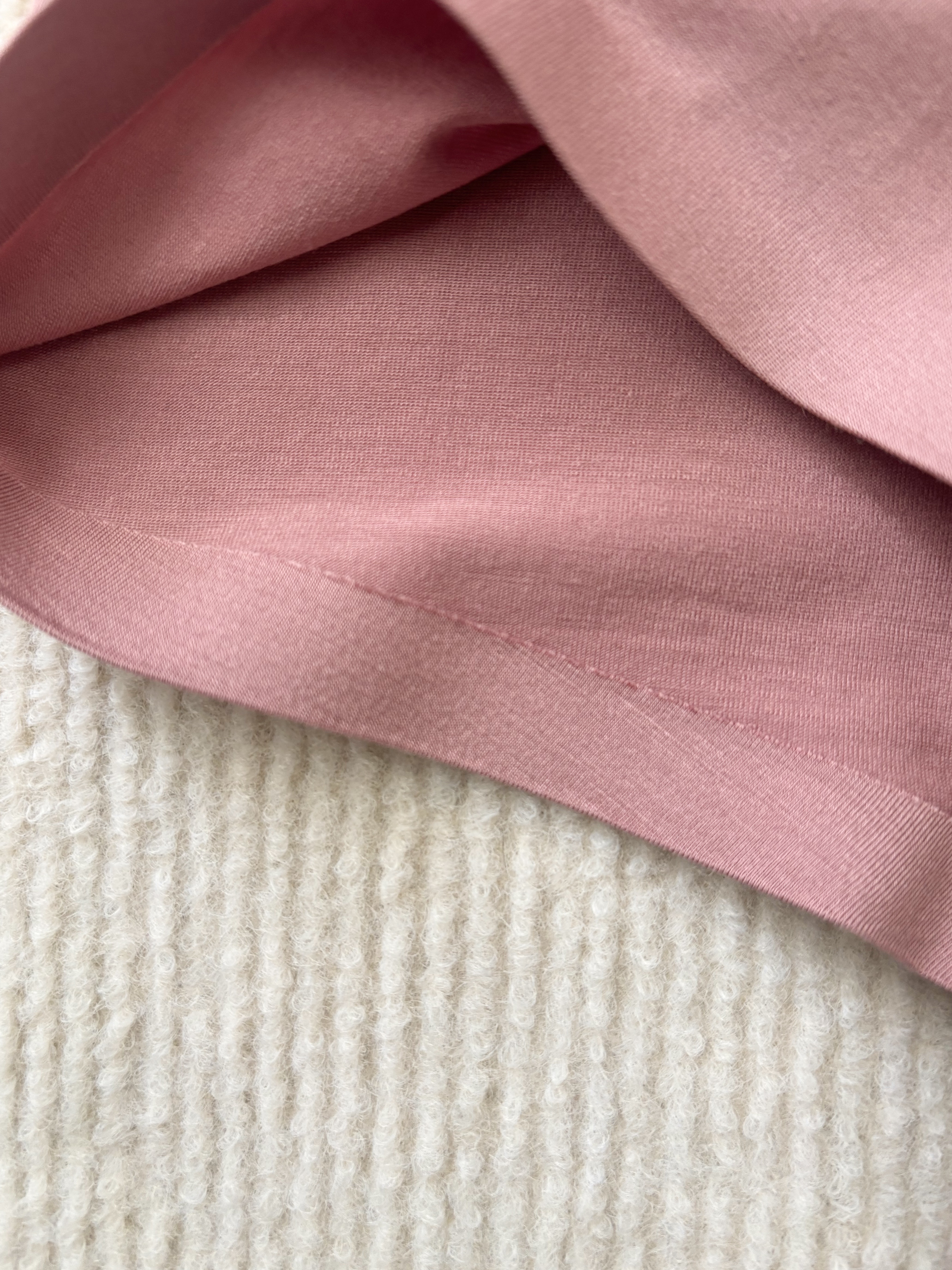 而且具有很好的透气性,,吸湿排汗,裸感宗肤,完全不紧绷,,整个面料是有垂感的。